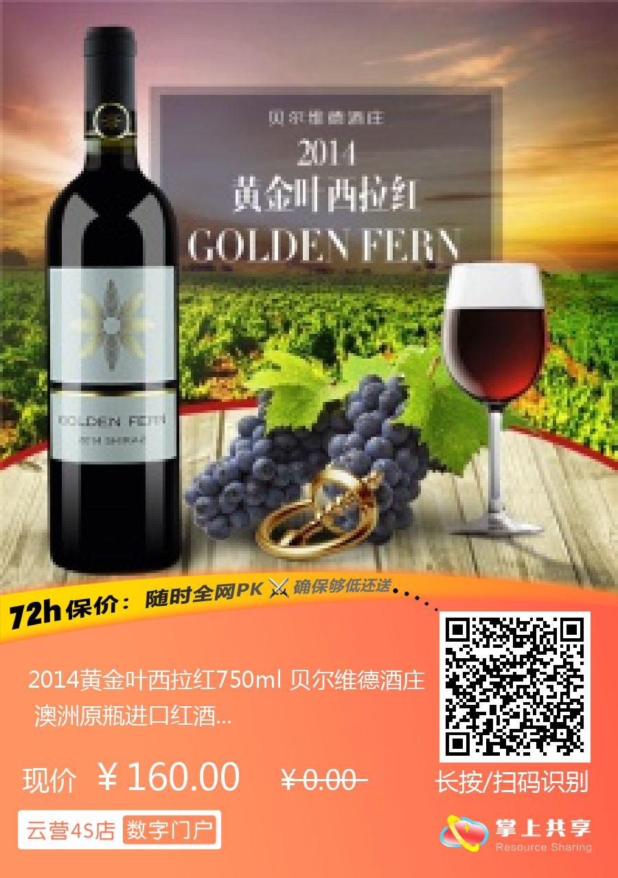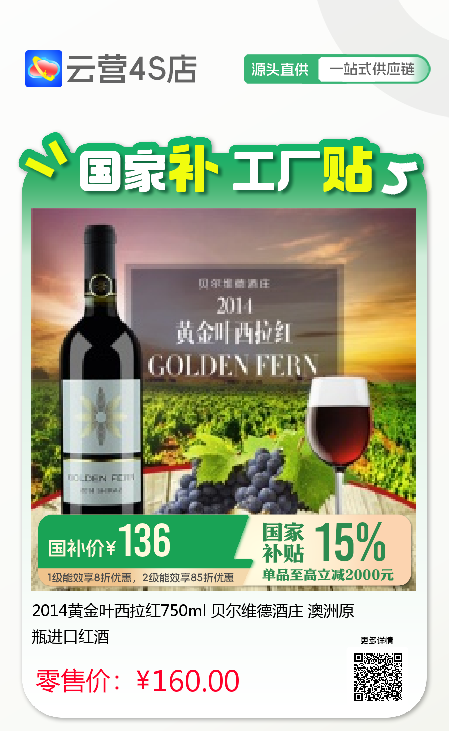 2014黄金叶西拉红750ml 贝尔维德酒庄 澳洲原瓶进口红酒