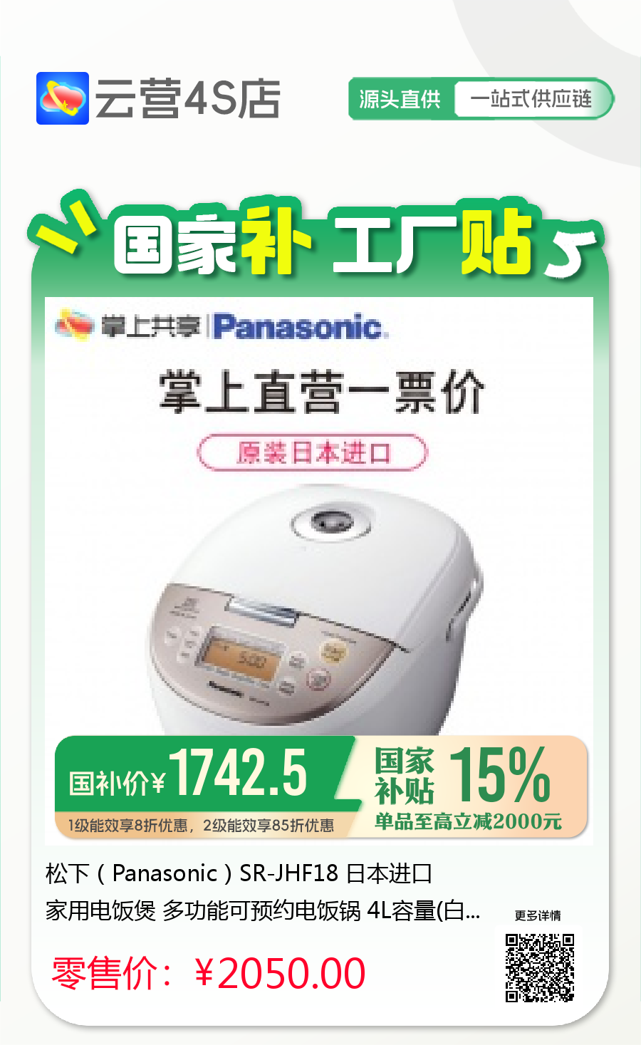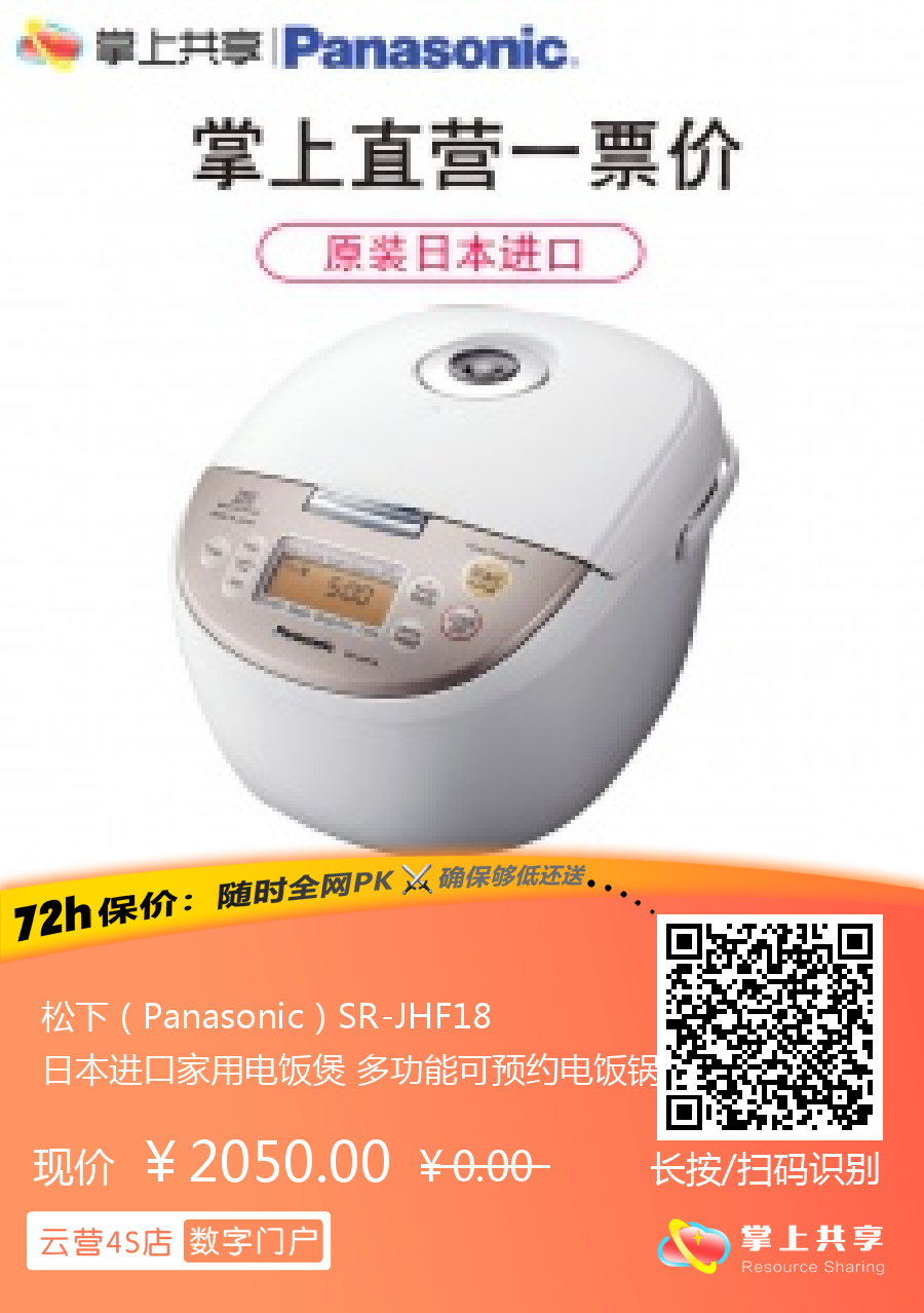 松下(Panasonic)SR-JHF18 日本进口家用电饭煲 多功能可预约电饭锅 4L容量(白粉色)