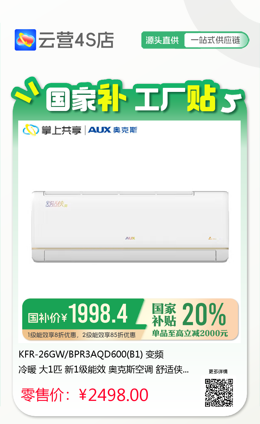 KFR-26GW/BPR3AQD600(B1) 变频冷暖 大1匹 新1级能效 奥克斯空调 舒适侠III系列