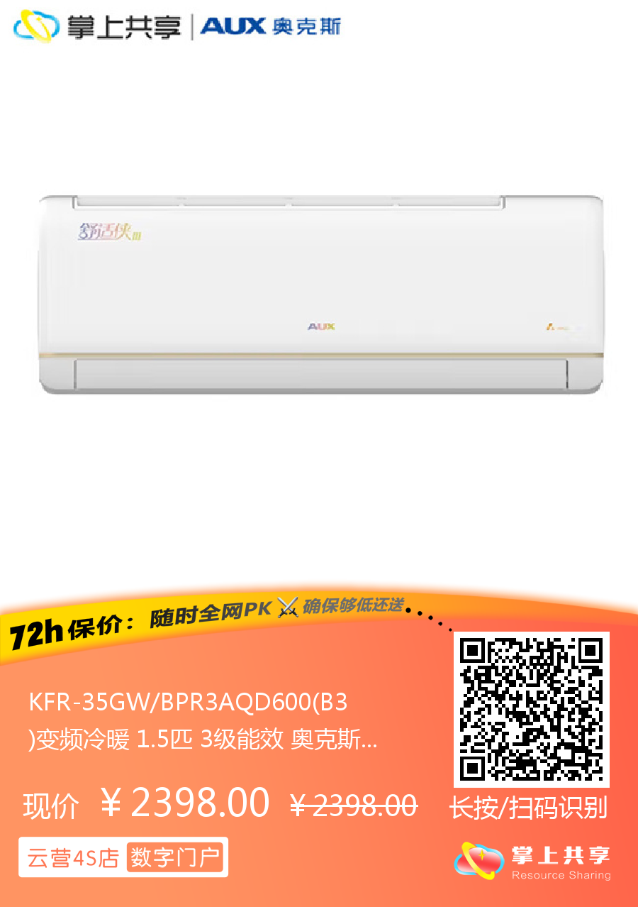 KFR-35GW/BPR3AQD600(B3)变频冷暖 1.5匹 3级能效 奥克斯空调 舒适侠III系列