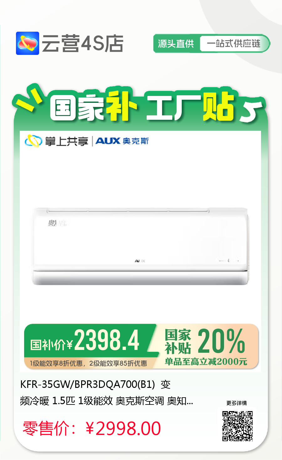 KFR-35GW/BPR3DQA700(B1) 变频冷暖 1.5匹 1级能效 奥克斯空调 奥知音系列
