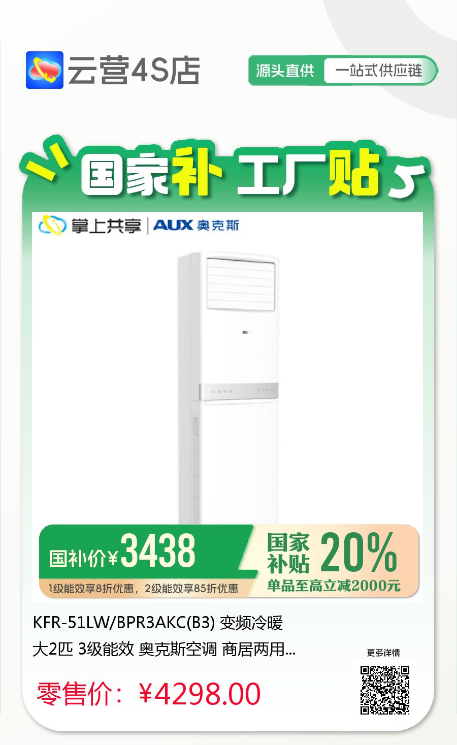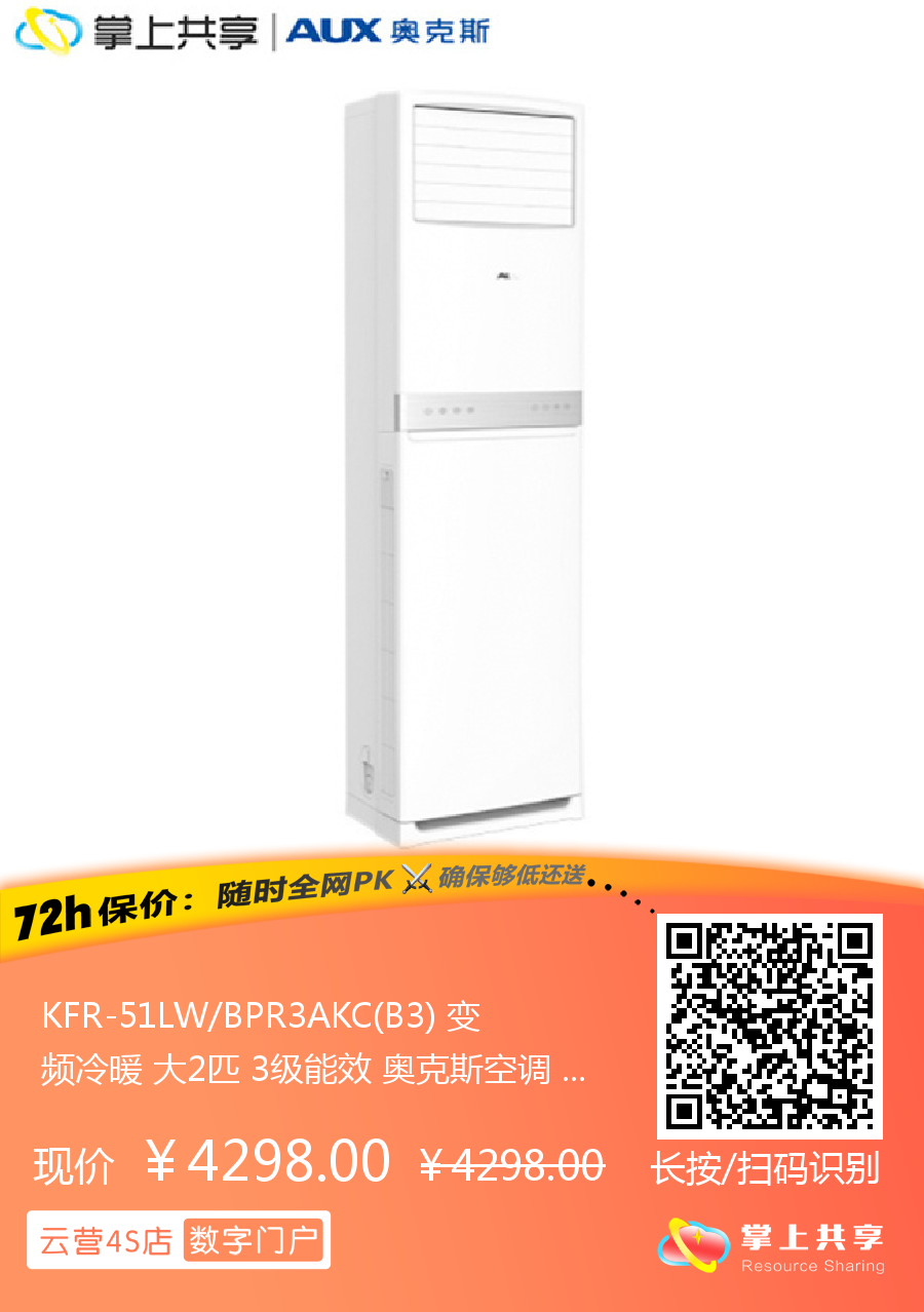 KFR-51LW/BPR3AKC(B3) 变频冷暖 大2匹 3级能效 奥克斯空调 商居两用