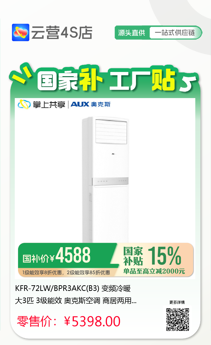 KFR-72LW/BPR3AKC(B3) 变频冷暖 大3匹 3级能效 奥克斯空调 商居两用