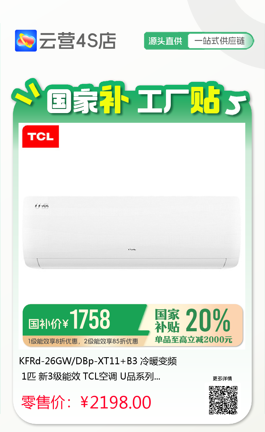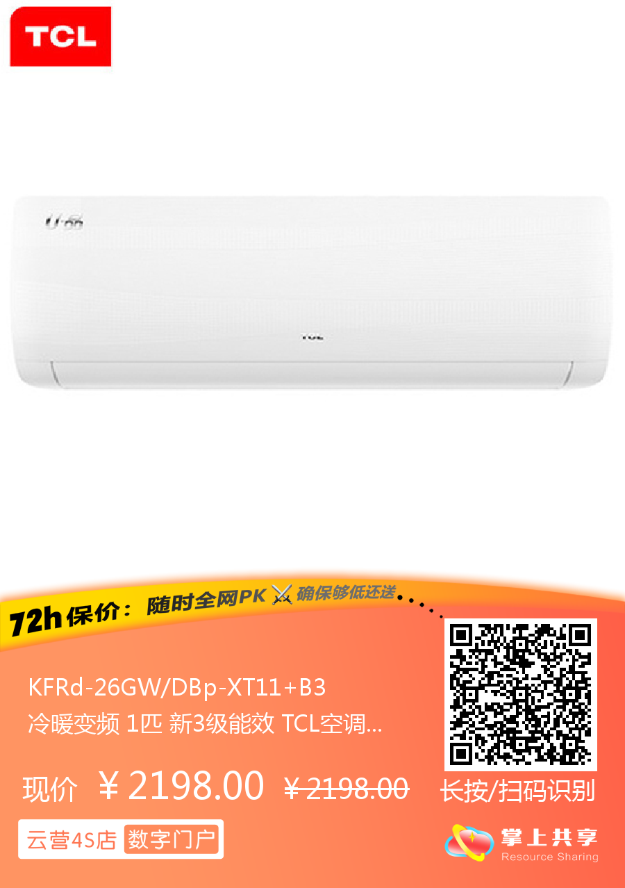 KFRd-26GW/DBp-XT11+B3 冷暖变频 1匹 新3级能效 TCL空调 U品系列