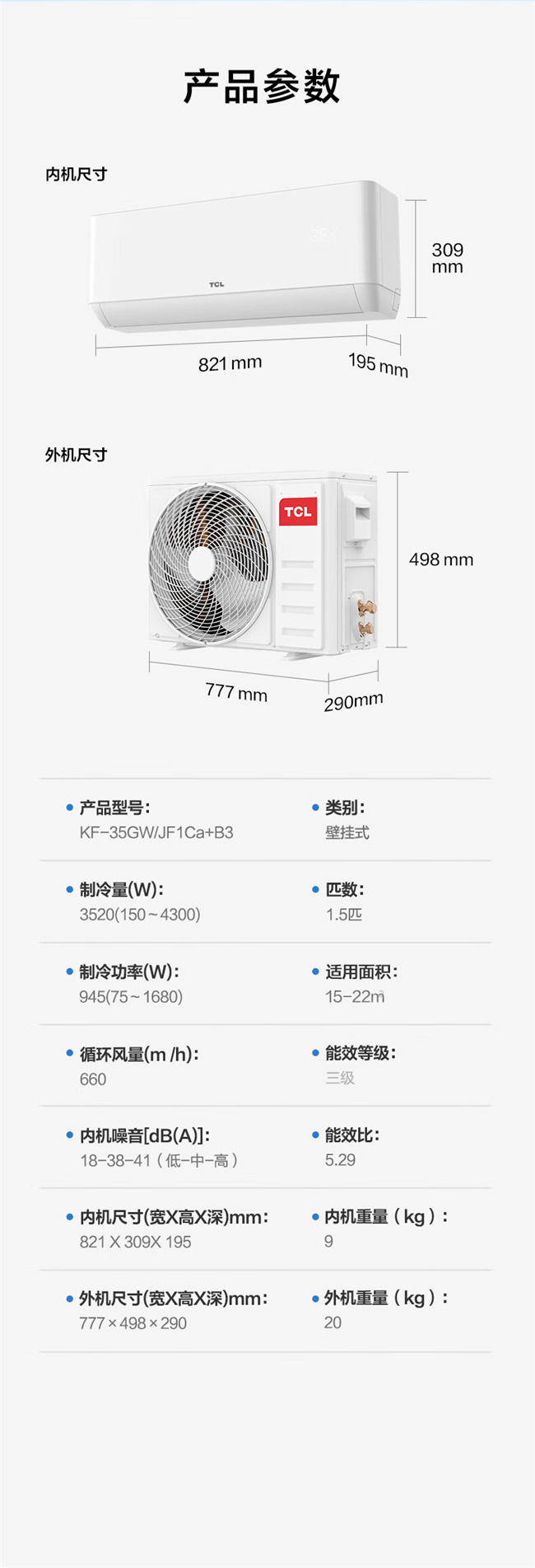 KF-35GW/JF1Ca+B3 单冷变频 大1.5匹 新3级能效 TCL空调 U品系列