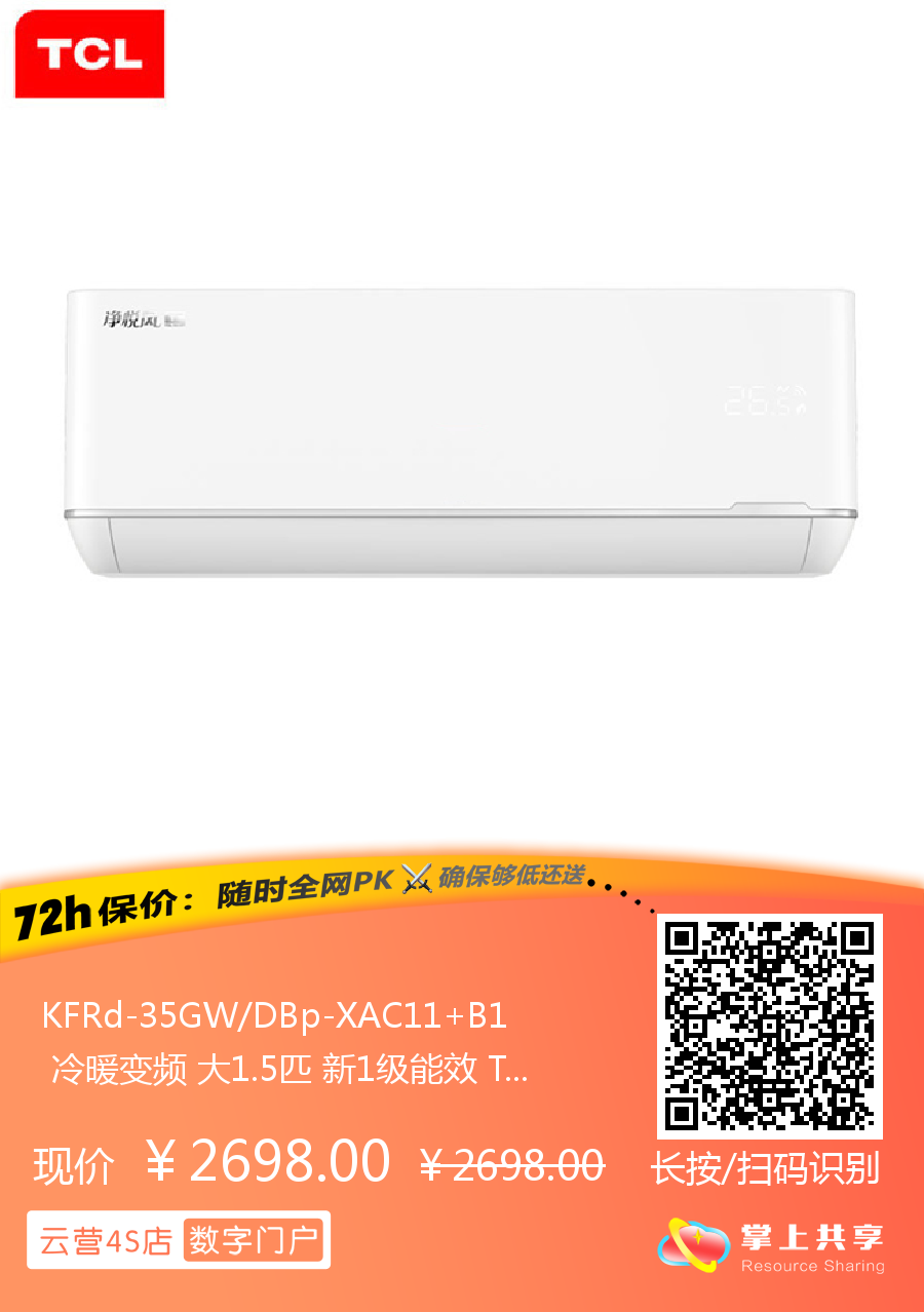 KFRd-35GW/DBp-XAC11+B1 冷暖变频 大1.5匹 新1级能效 TCL空调 净悦风系列