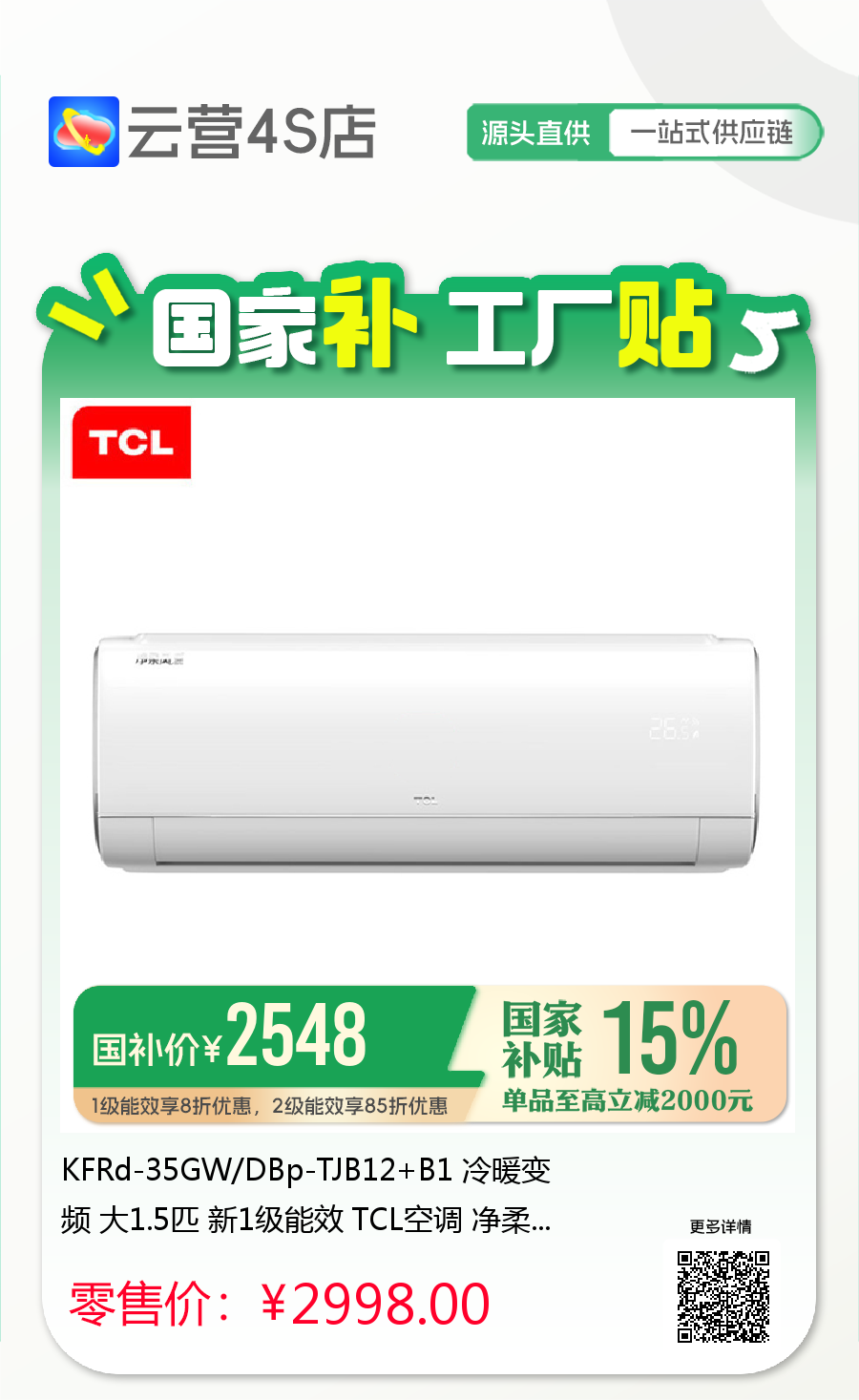 KFRd-35GW/DBp-TJB12+B1 冷暖变频 大1.5匹 新1级能效 TCL空调 净柔风系列