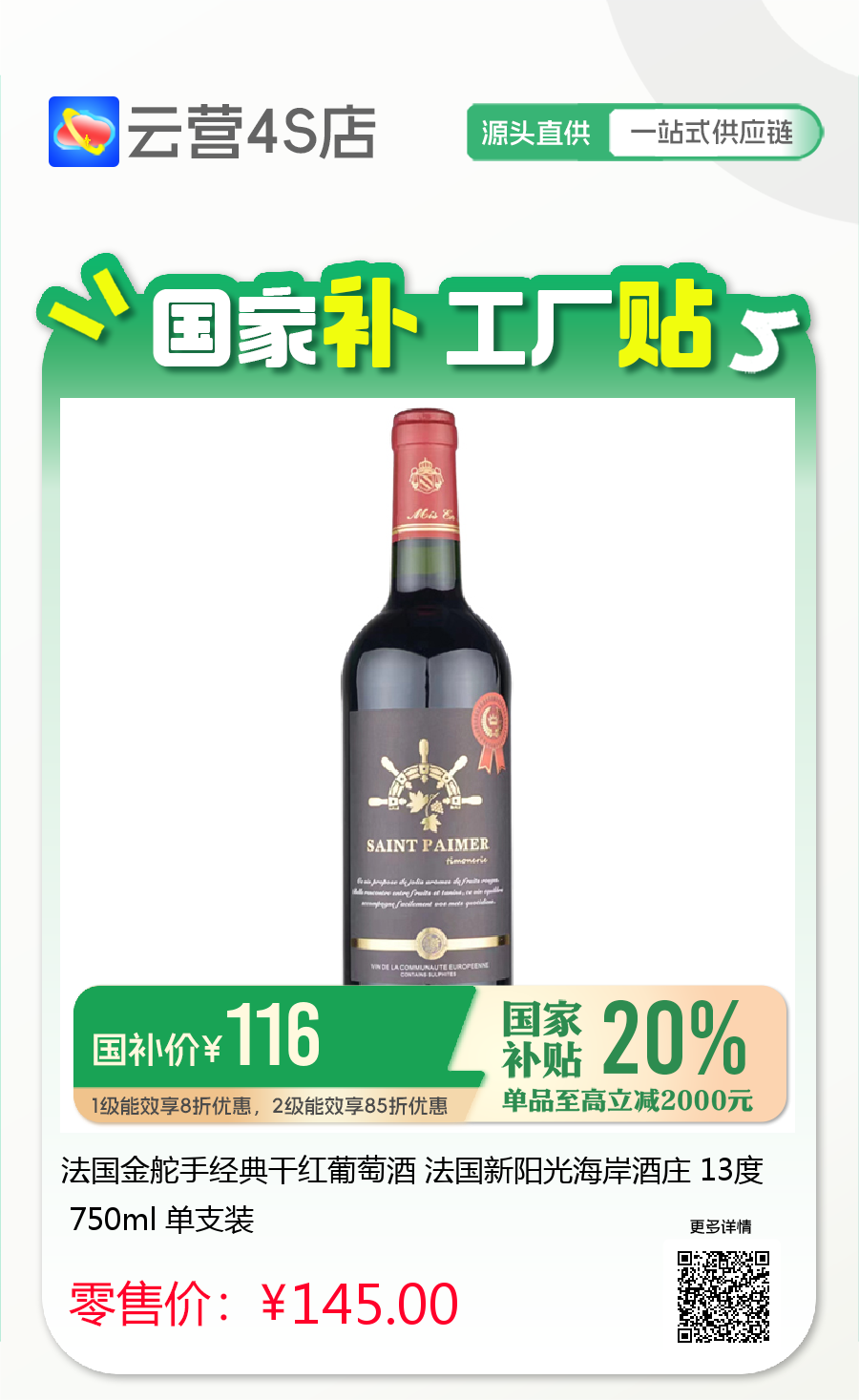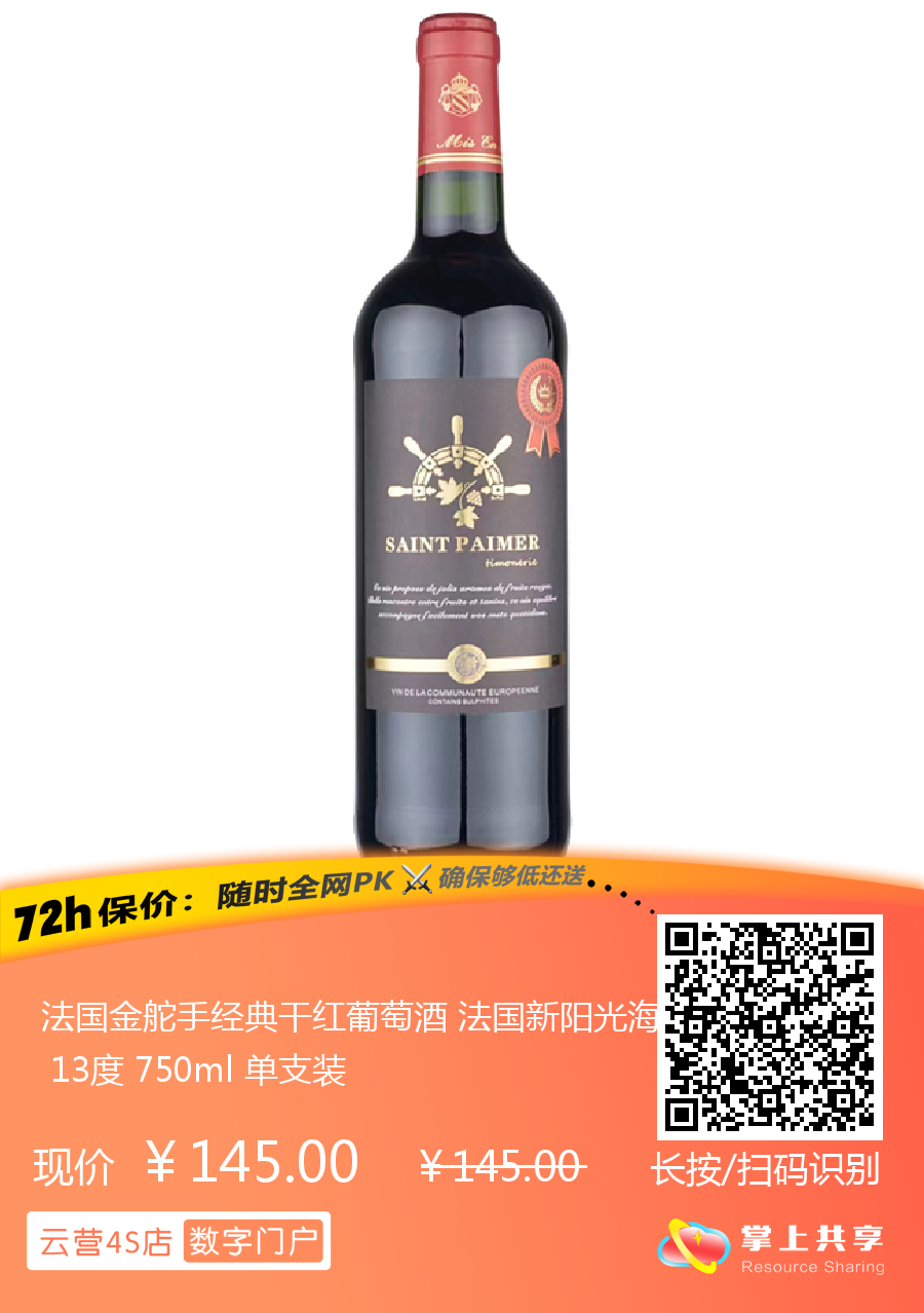 法国金舵手经典干红葡萄酒 法国新阳光海岸酒庄 13度 750ml 单支装
