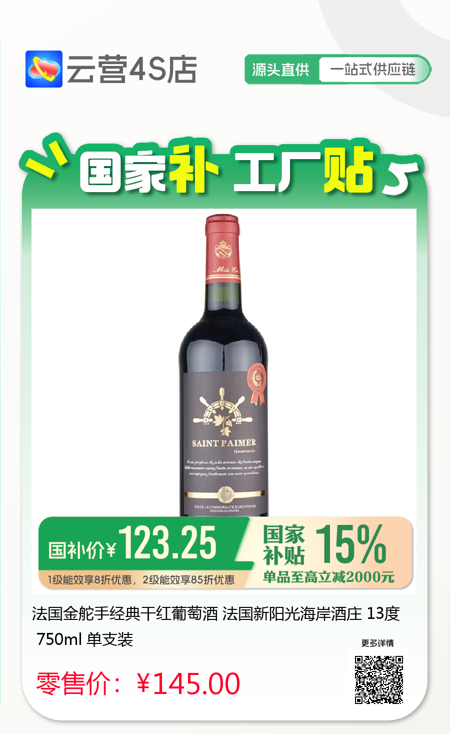 法国金舵手经典干红葡萄酒 法国新阳光海岸酒庄 13度 750ml 单支装