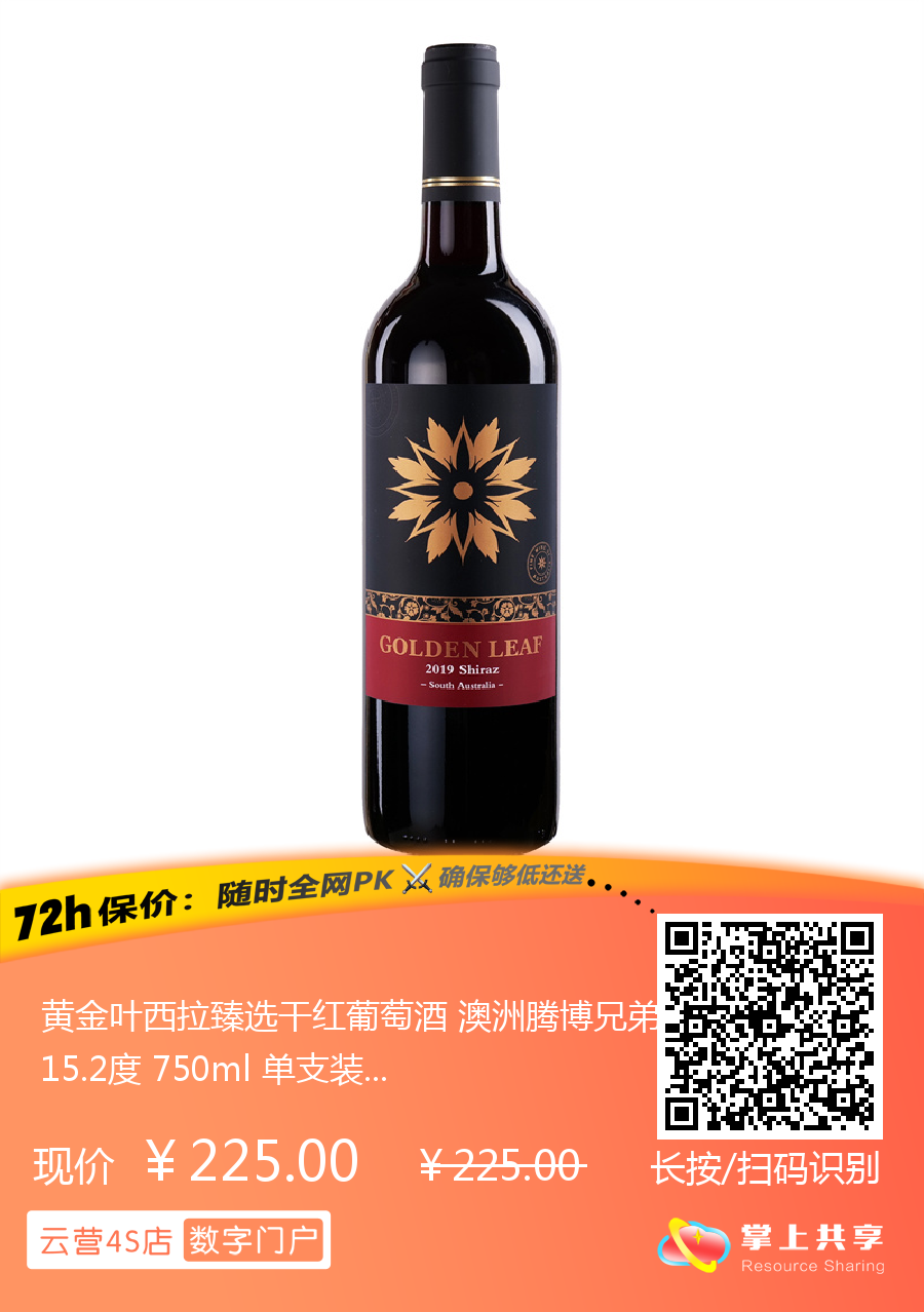 黄金叶西拉臻选干红葡萄酒 澳洲腾博兄弟酒庄 15.2度 750ml 单支装