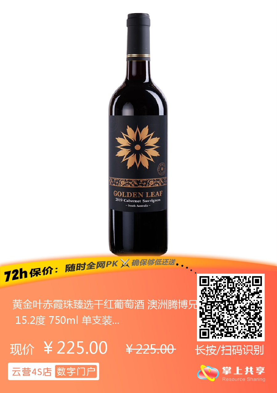 黄金叶赤霞珠臻选干红葡萄酒 澳洲腾博兄弟酒庄 15.2度 750ml 单支装