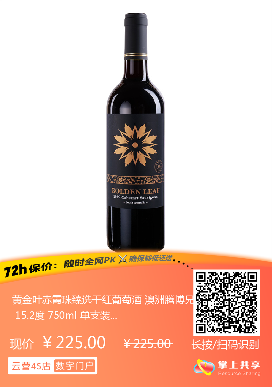 黄金叶赤霞珠臻选干红葡萄酒 澳洲腾博兄弟酒庄 15.2度 750ml 单支装