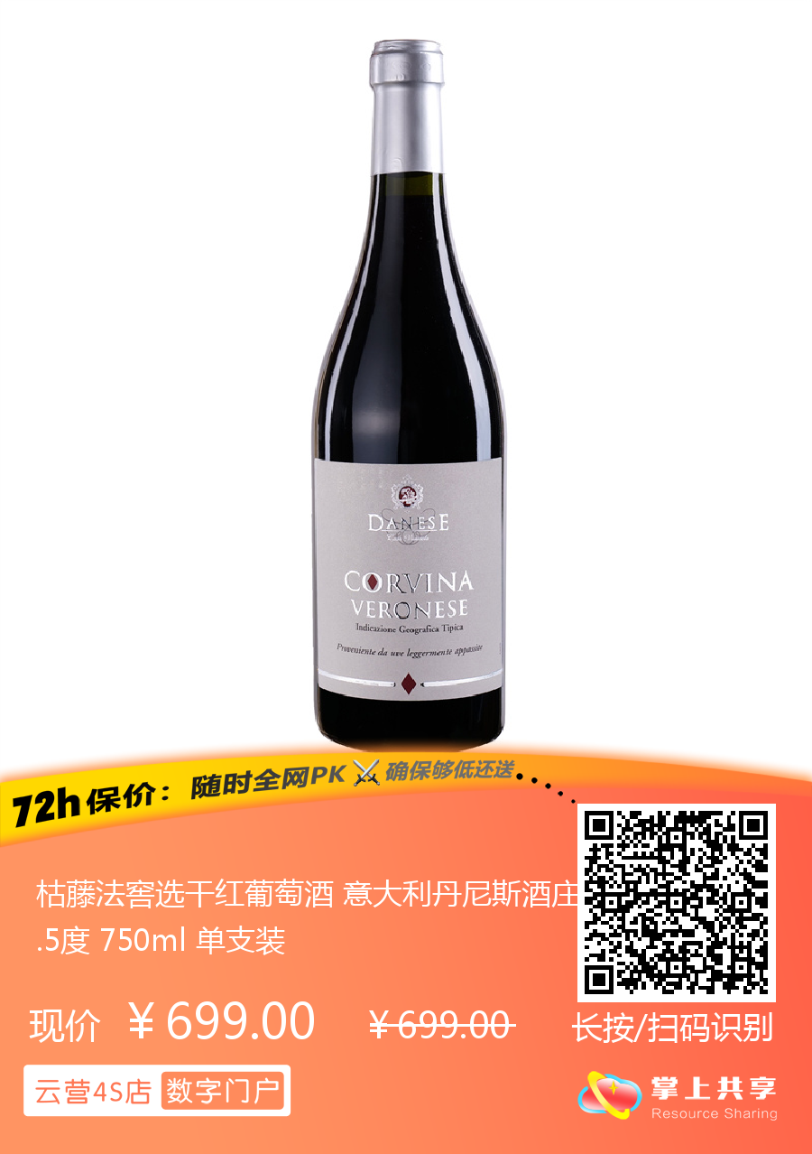 枯藤法窖选干红葡萄酒 意大利丹尼斯酒庄 13.5度 750ml 单支装
