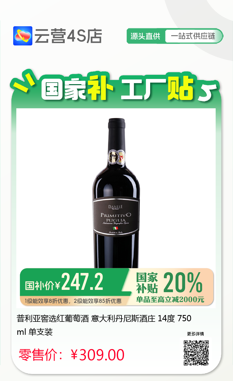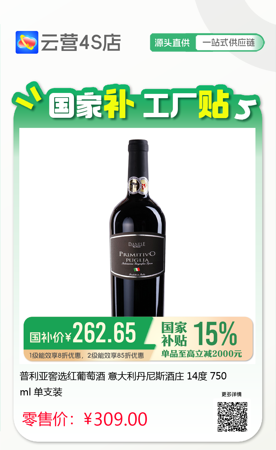 普利亚窖选红葡萄酒 意大利丹尼斯酒庄 14度 750ml 单支装