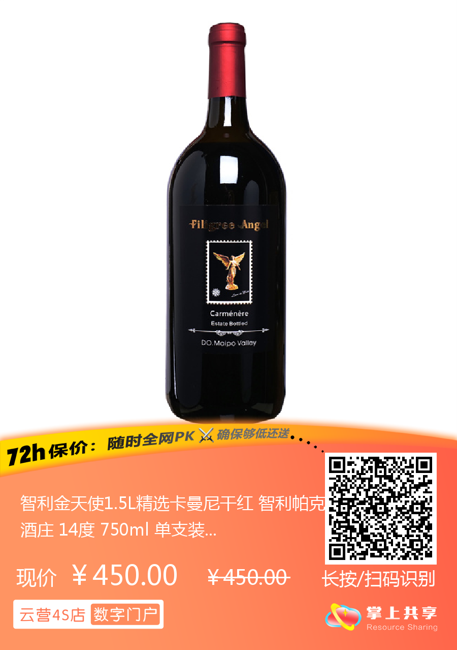智利金天使1.5L精选卡曼尼干红 智利帕克斯酒庄 14度 750ml 单支装