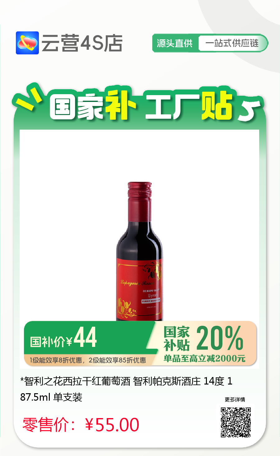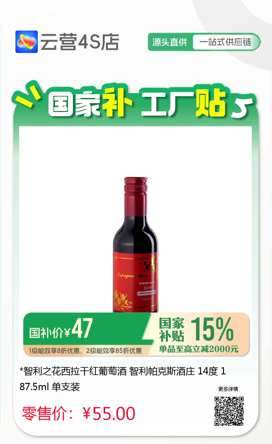 *智利之花西拉干红葡萄酒 智利帕克斯酒庄 14度 187.5ml 单支装