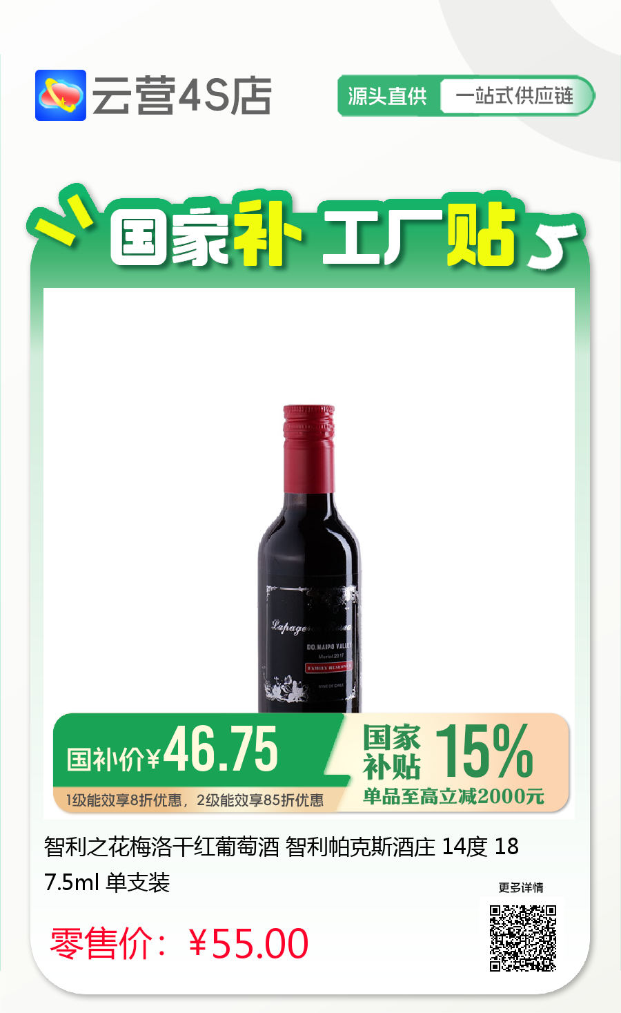 智利之花梅洛干红葡萄酒 智利帕克斯酒庄 14度 187.5ml 单支装