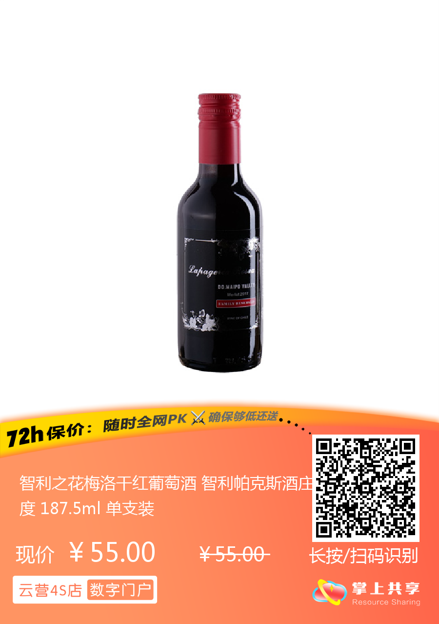 智利之花梅洛干红葡萄酒 智利帕克斯酒庄 14度 187.5ml 单支装