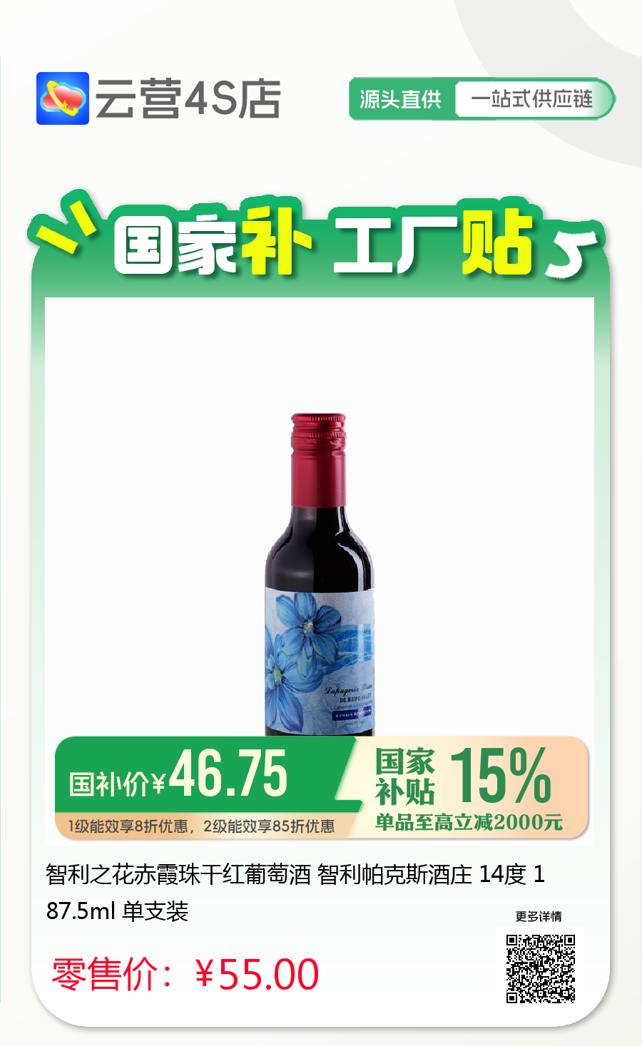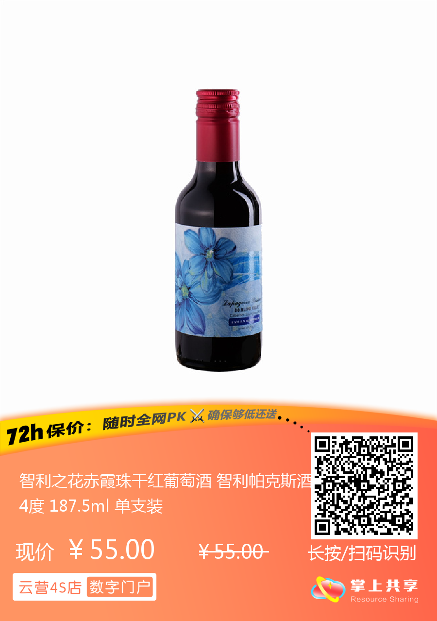 智利之花赤霞珠干红葡萄酒 智利帕克斯酒庄 14度 187.5ml 单支装