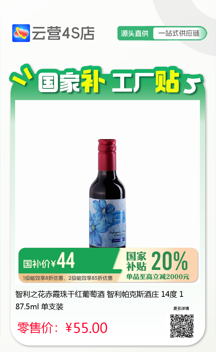 智利之花赤霞珠干红葡萄酒 智利帕克斯酒庄 14度 187.5ml 单支装