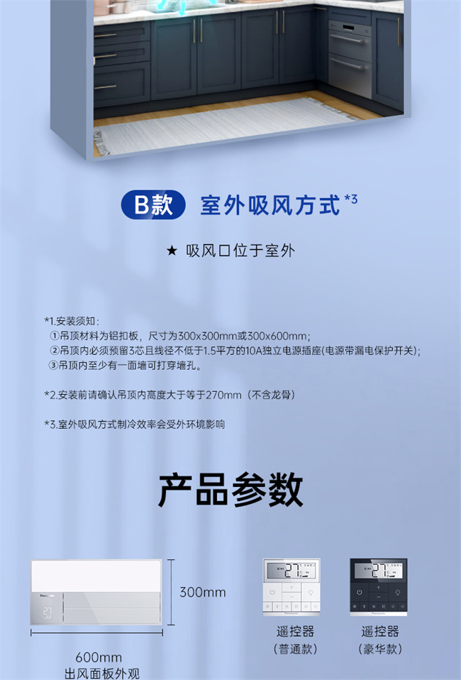 厨房空调一体机HBF0RDA嵌入内置原装LED灯高效防油污适用于二次改装(豪华款内吸风)松下(Panasonic)
