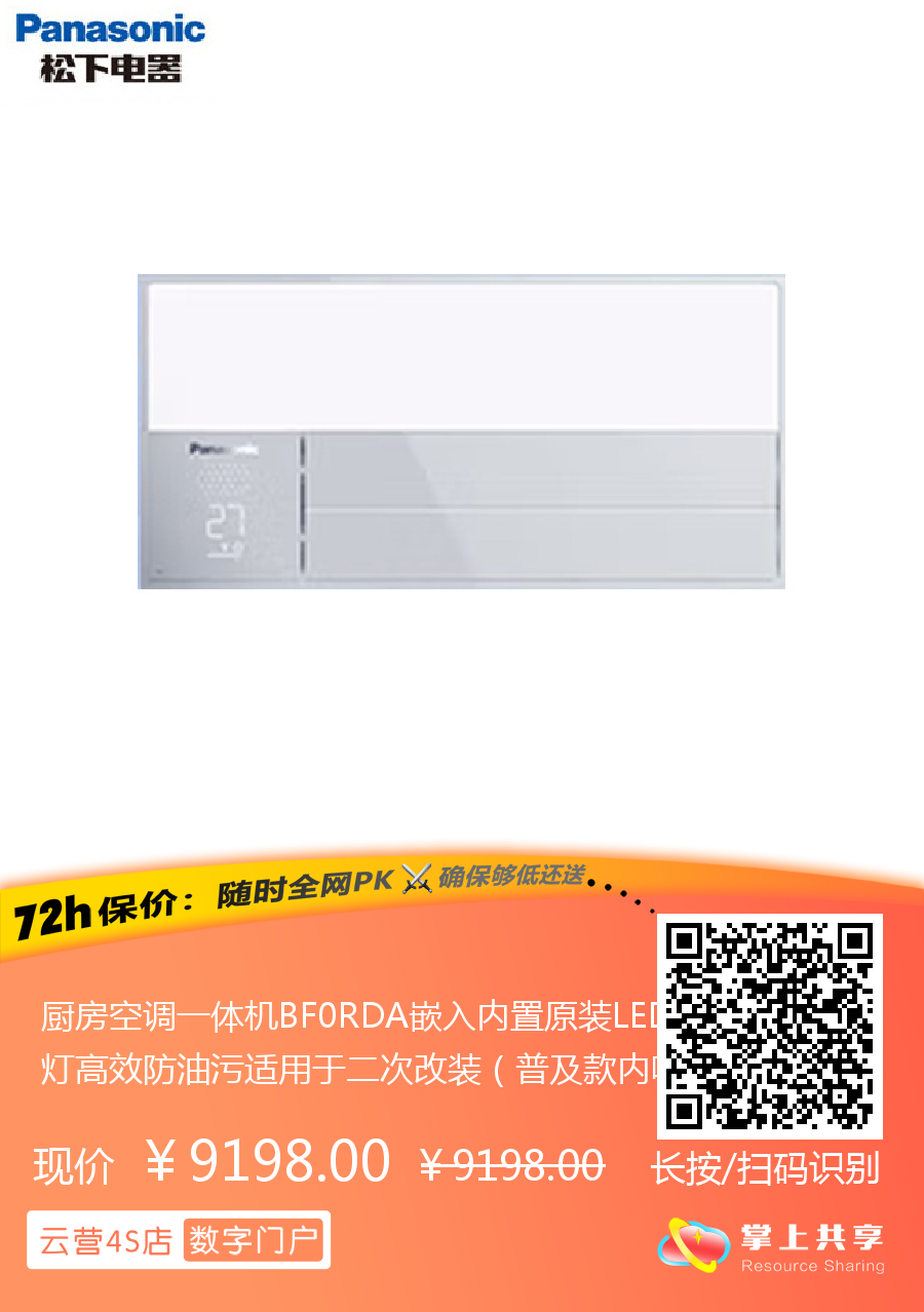 厨房空调一体机BF0RDA嵌入内置原装LED灯高效防油污适用于二次改装(普及款内吸风)松下(Panasonic)