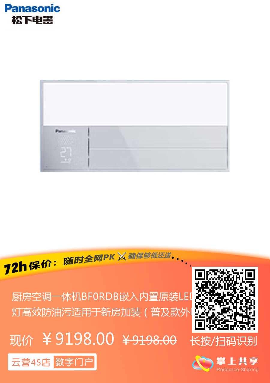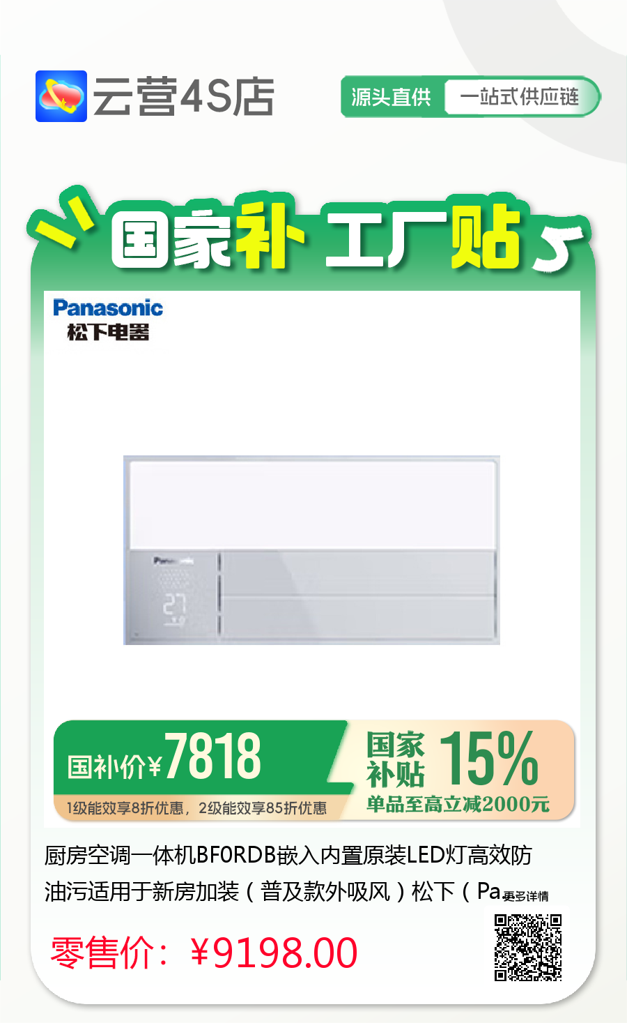 厨房空调一体机BF0RDB嵌入内置原装LED灯高效防油污适用于新房加装(普及款外吸风)松下(Panasonic)