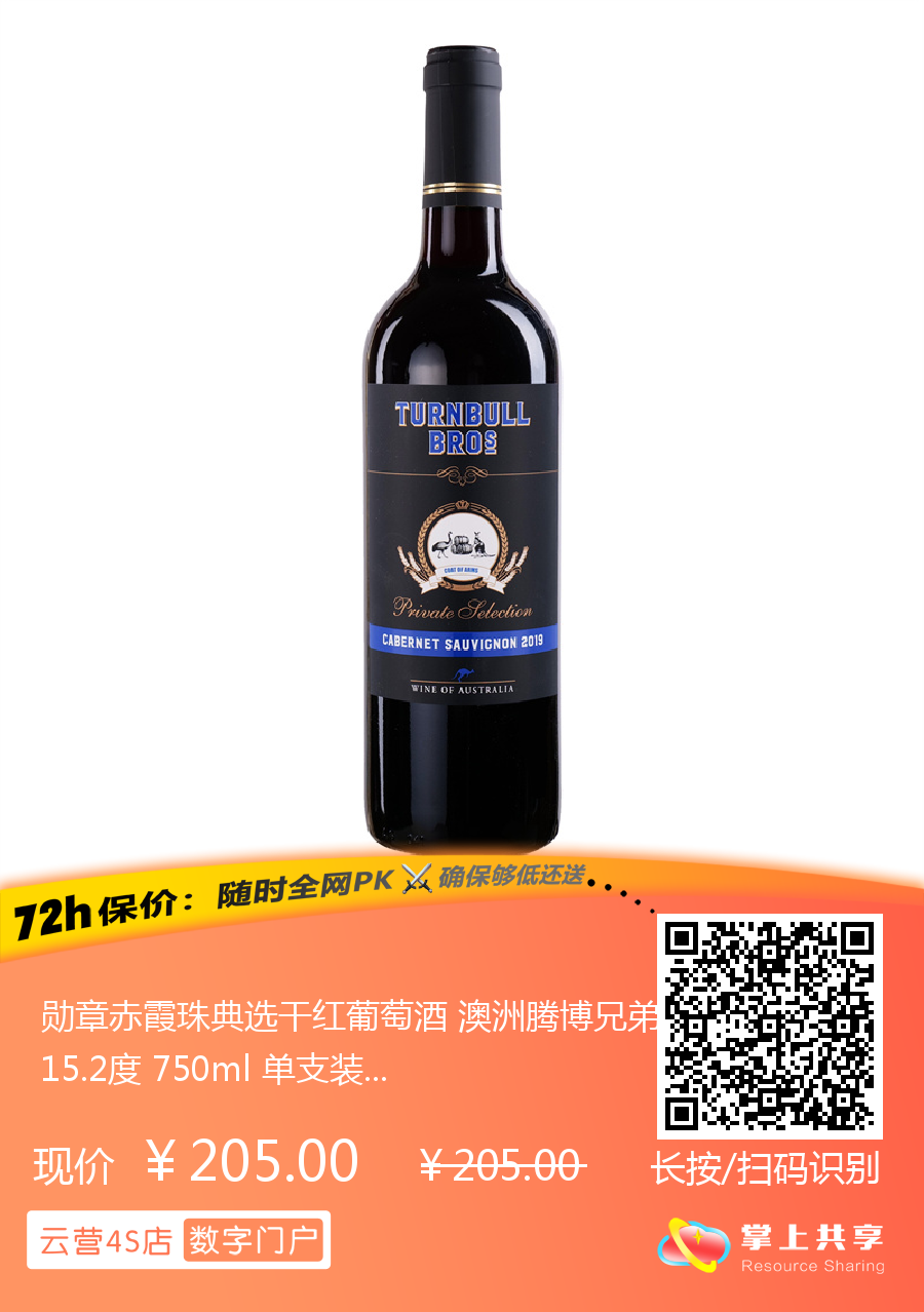 勋章赤霞珠典选干红葡萄酒 澳洲腾博兄弟酒庄 15.2度 750ml 单支装