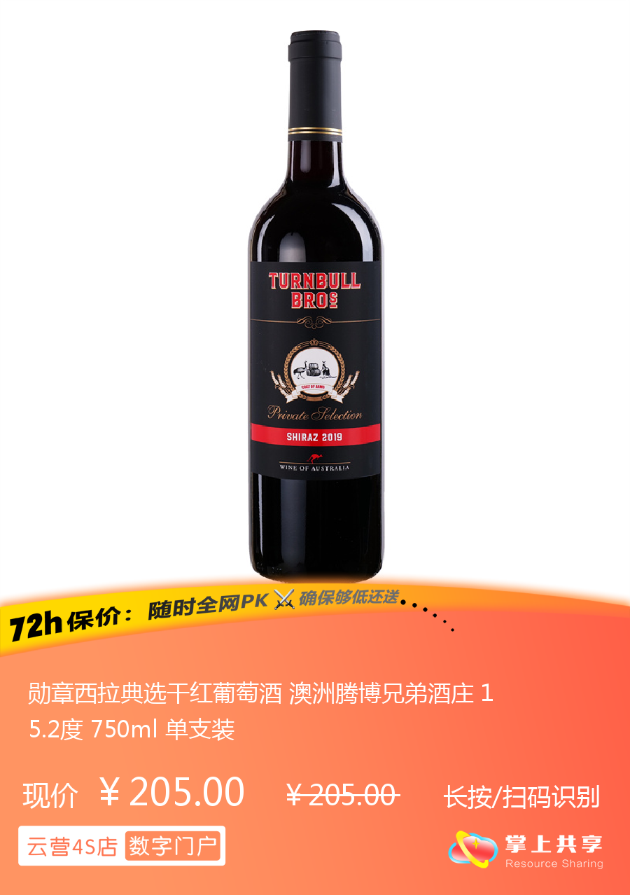 勋章西拉典选干红葡萄酒 澳洲腾博兄弟酒庄 15.2度 750ml 单支装