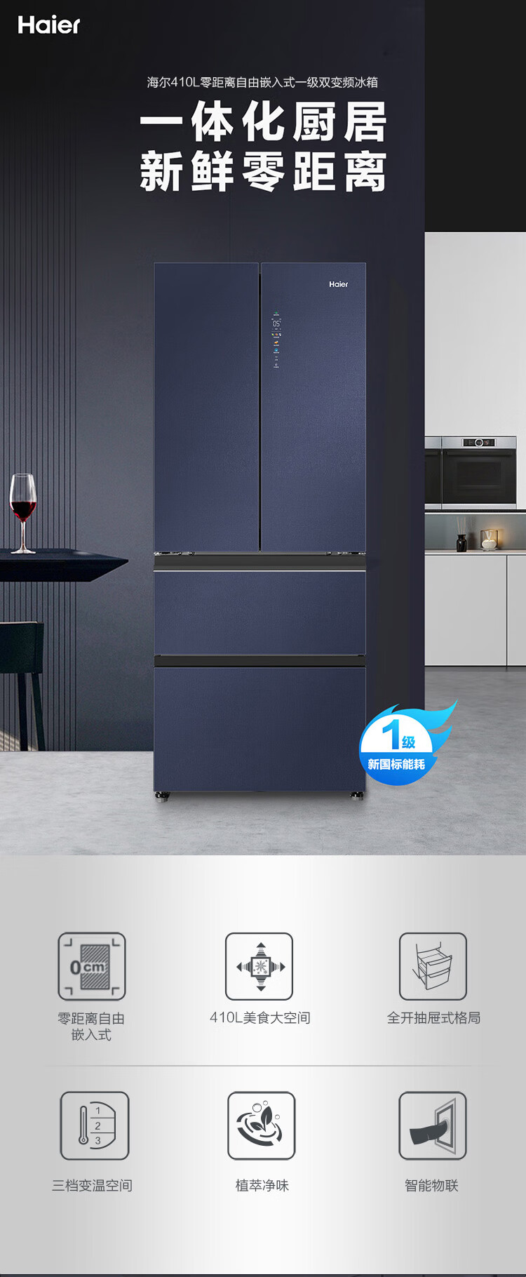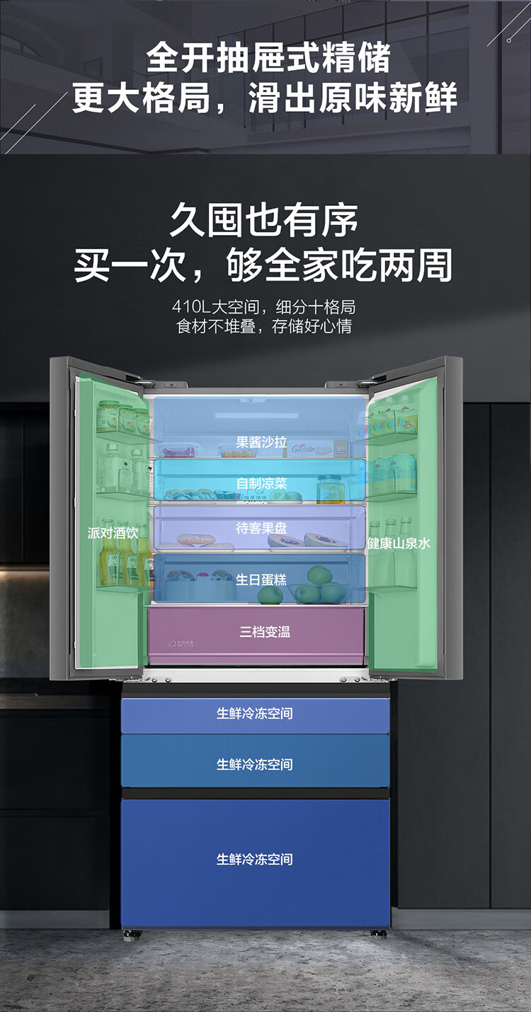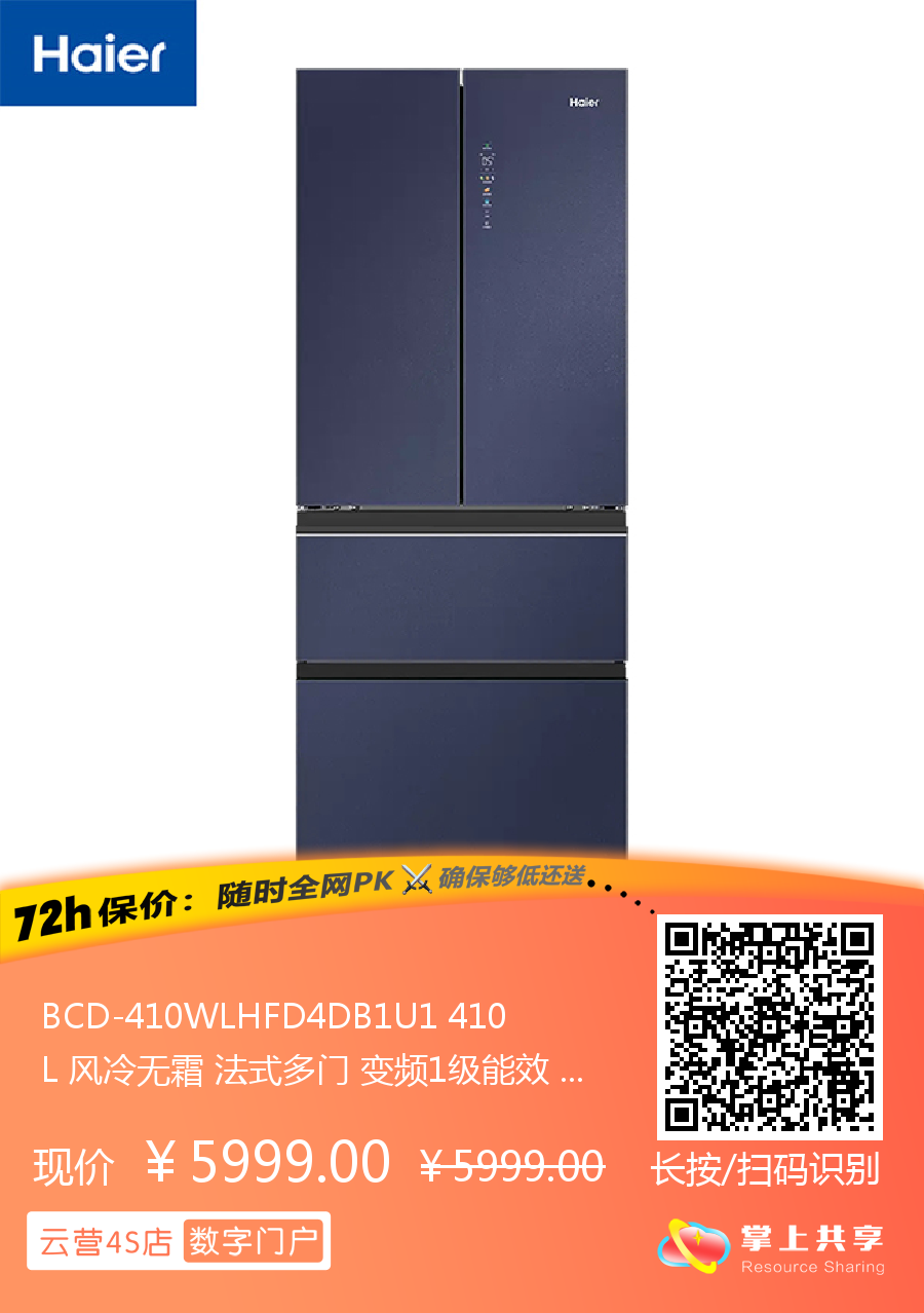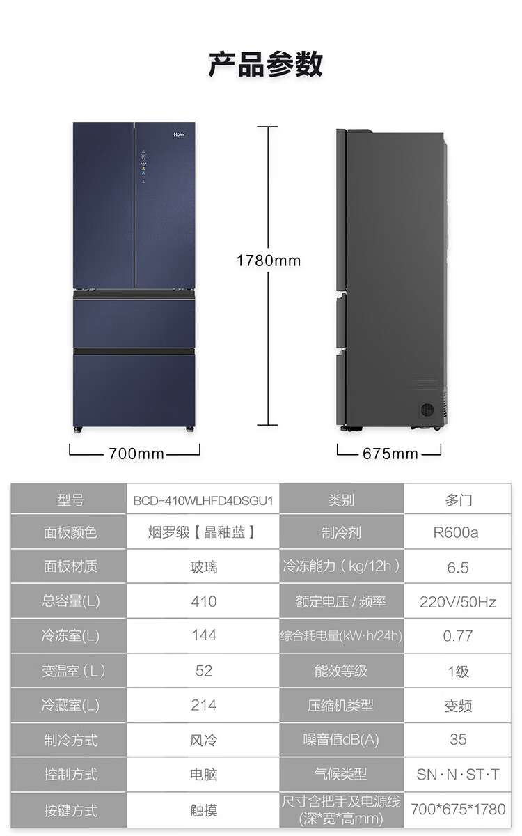 BCD-410WLHFD4DB1U1 410L 风冷无霜 法式多门 变频1级能效 海尔(Haier)