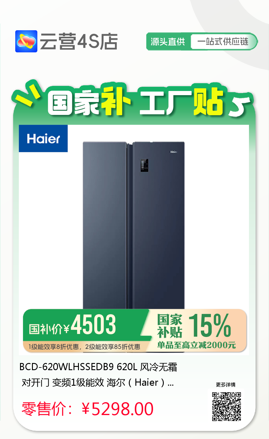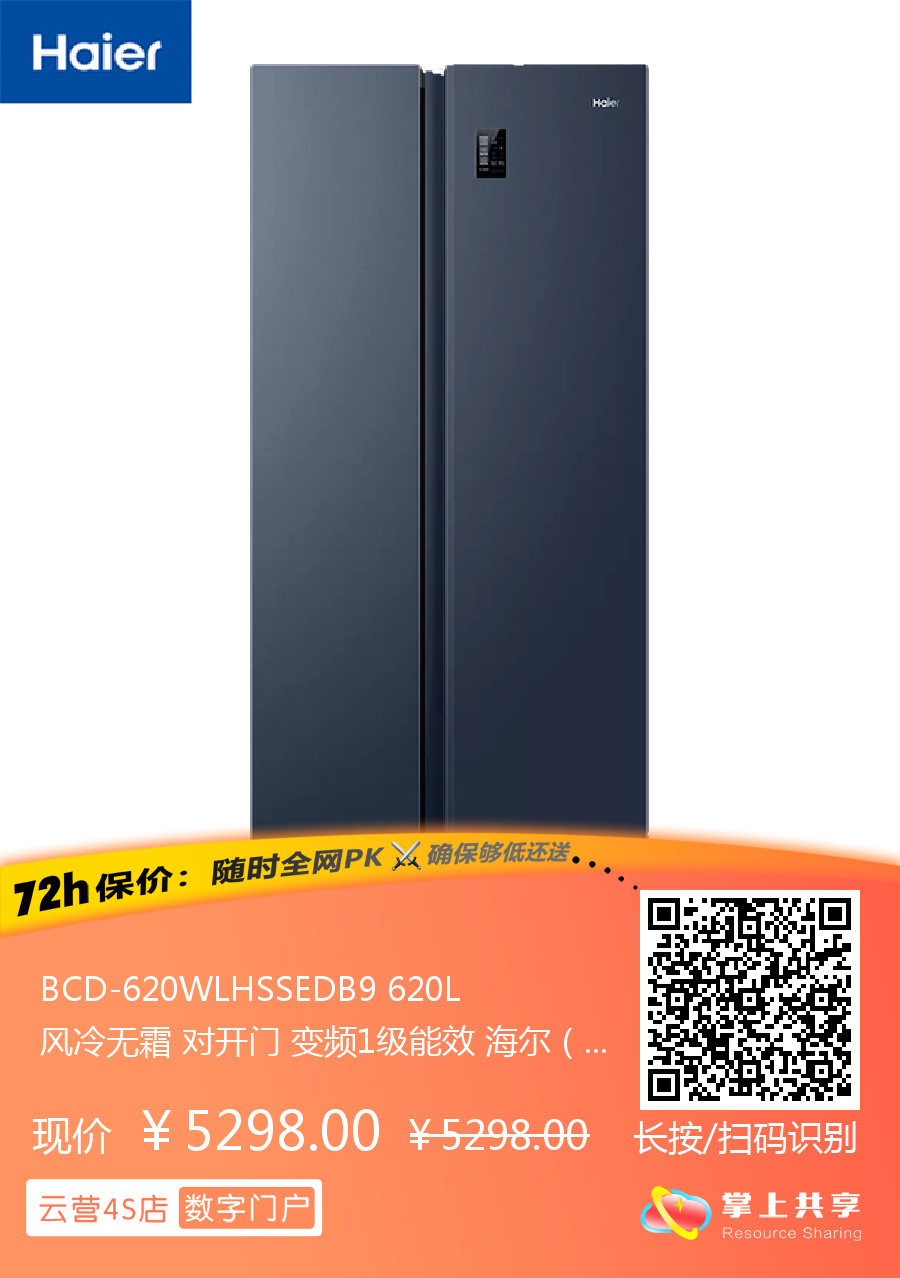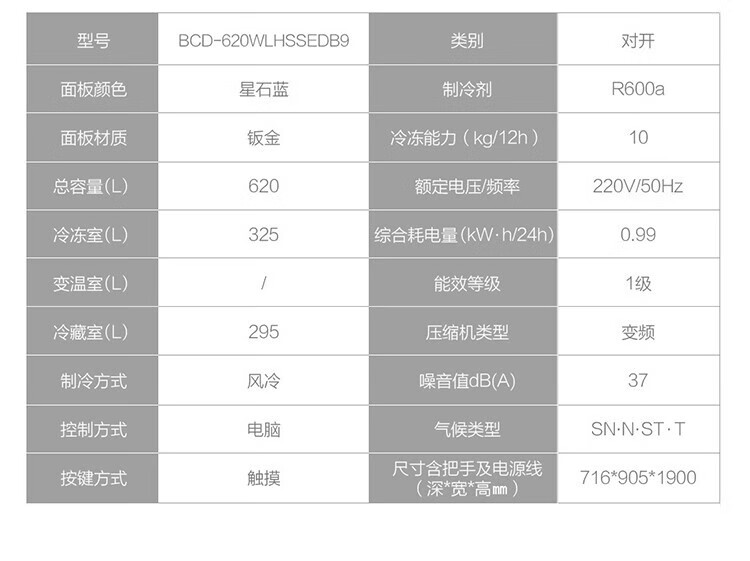 BCD-620WLHSSEDB9 620L 风冷无霜 对开门 变频1级能效 海尔(Haier)