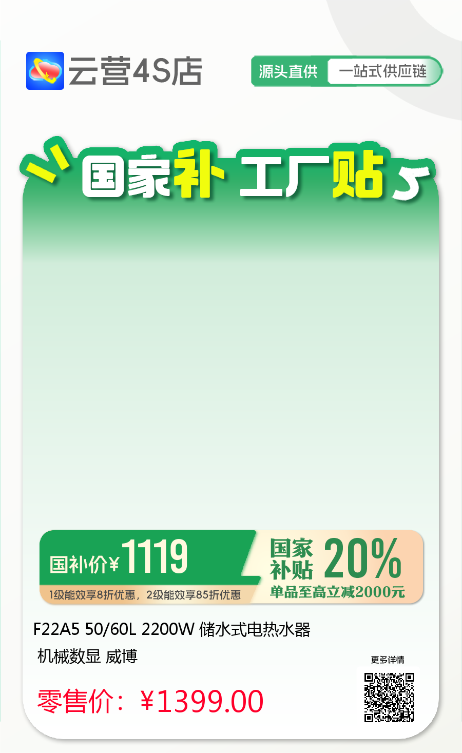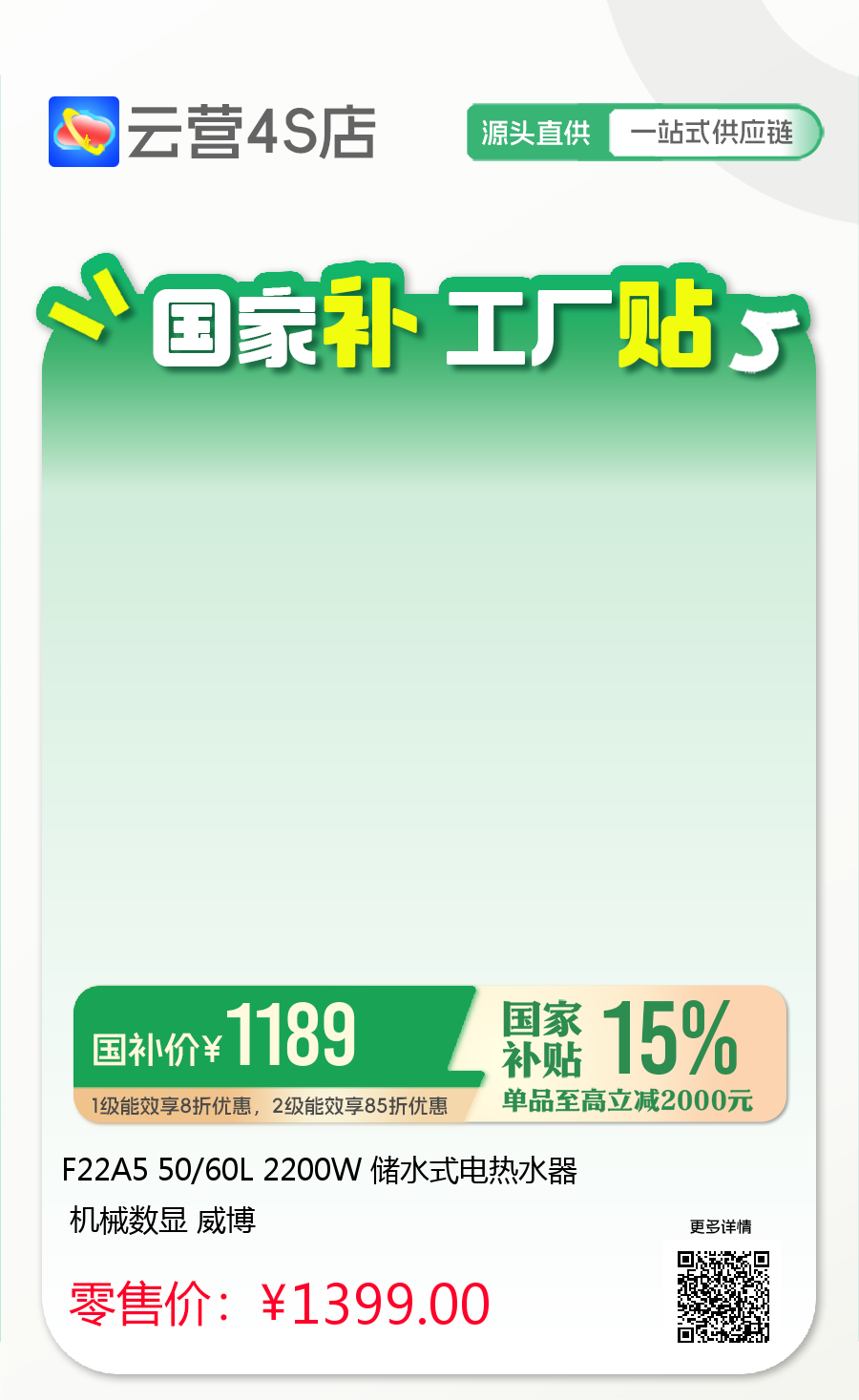 F22A5 50/60L 2200W 储水式电热水器 机械数显 威博