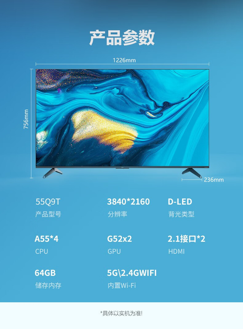 55Q9T 55英寸 免遥控语音 高刷UMAX影院 系统MEMC运动防抖 4K超高清液晶LED电视机 长虹电视
