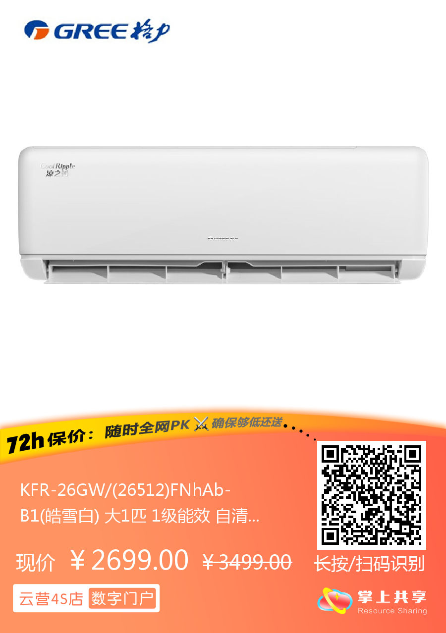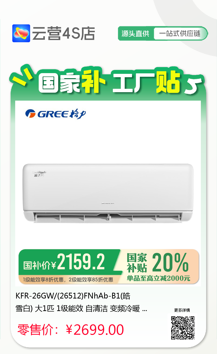 格力 大1匹挂机 凉之沁 新1级能效 冷暖变频空调 KFR-26GW/(26512)FNhAb-B1(皓雪白)