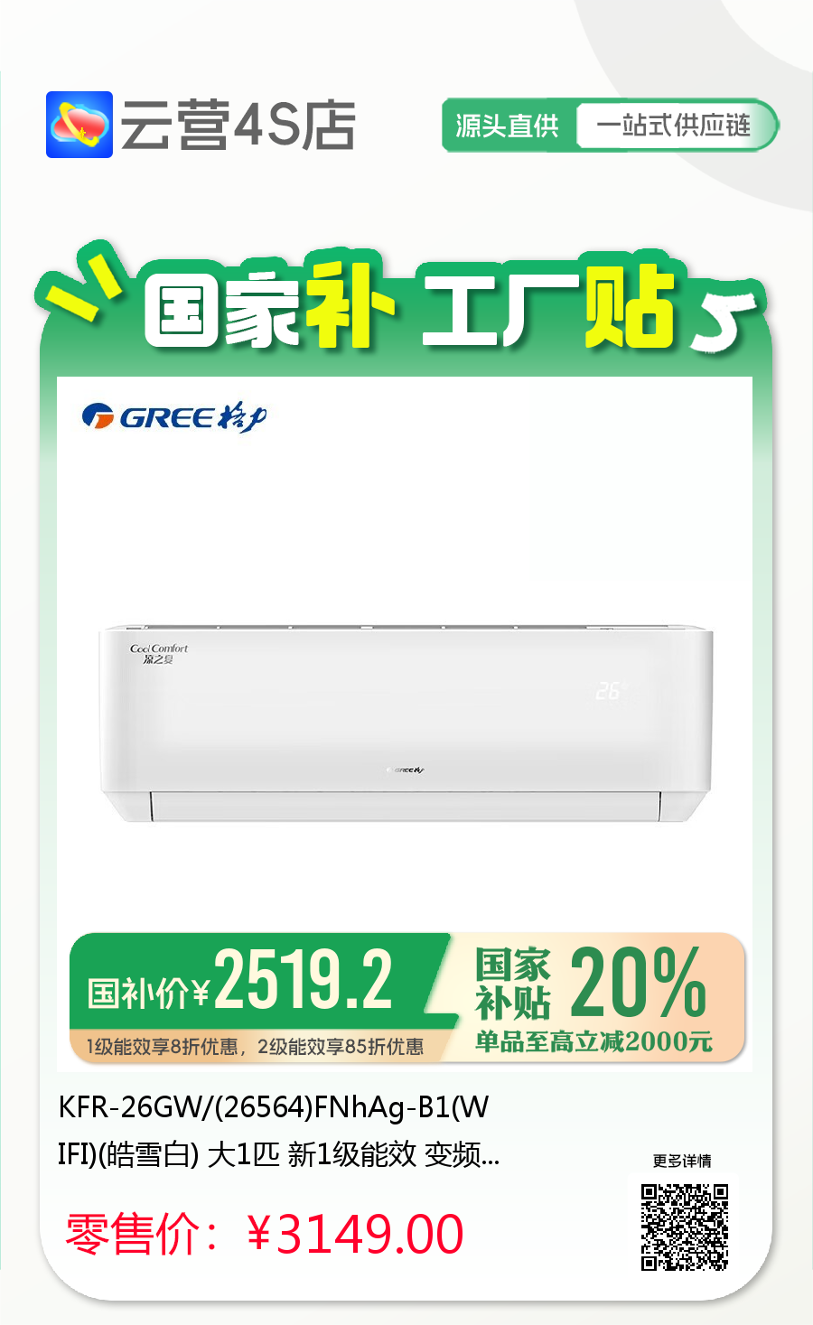 格力 大1匹挂机 凉之夏 新1级能效 冷暖变频空调 KFR-26GW/(26564)FNhAg-B1(WIFI)(皓雪白)