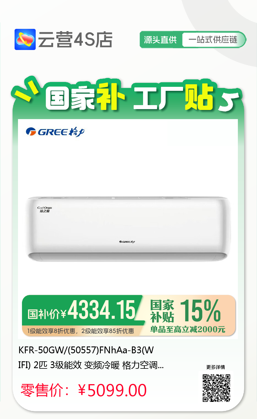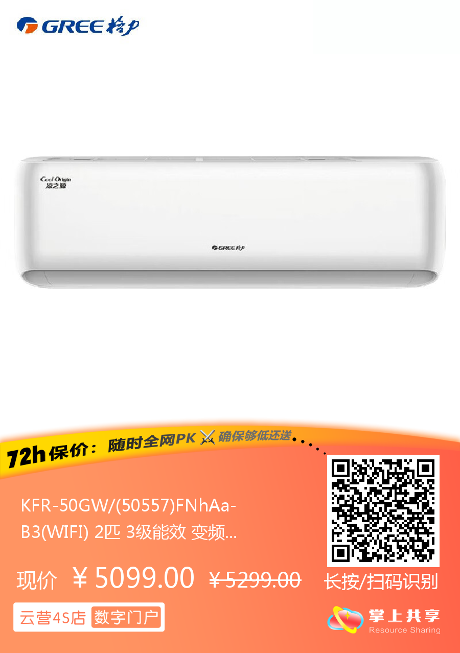 格力 2匹挂机 凉之源 新3级能效 冷暖变频空调 KFR-50GW/(50557)FNhAa-B3(WIFI)