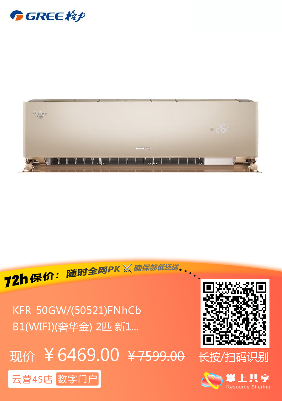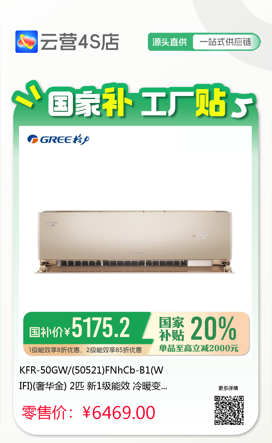 格力 2匹挂机 U雅 新1级能效 冷暖变频空调 KFR-50GW/(50521)FNhCb-B1(WIFI)(奢华金)