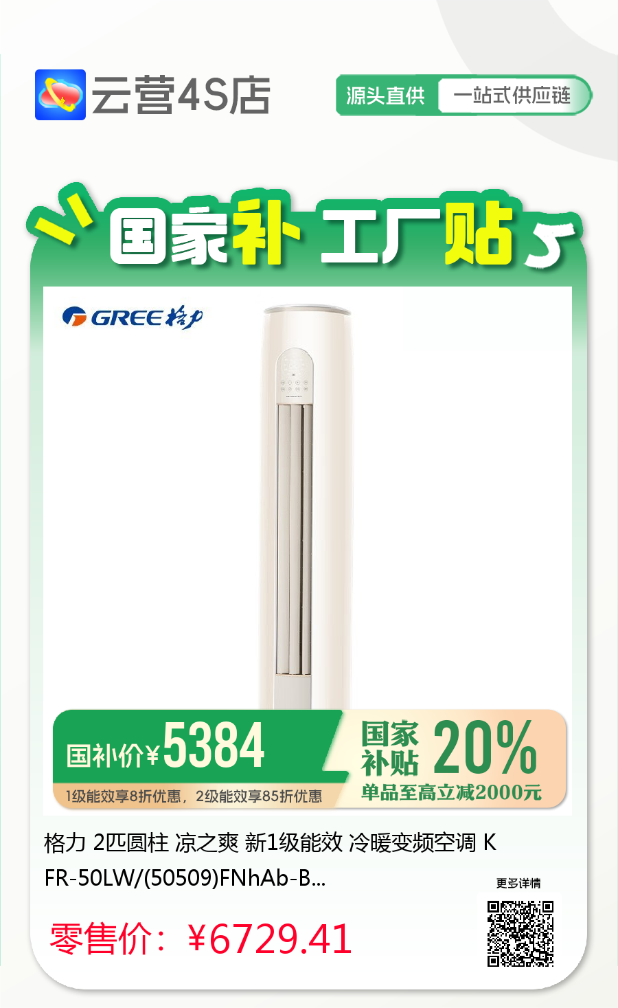 格力 2匹圆柱 凉之爽 新1级能效 冷暖变频空调 KFR-50LW/(50509)FNhAb-B1(WIFI)(奶茶玉)