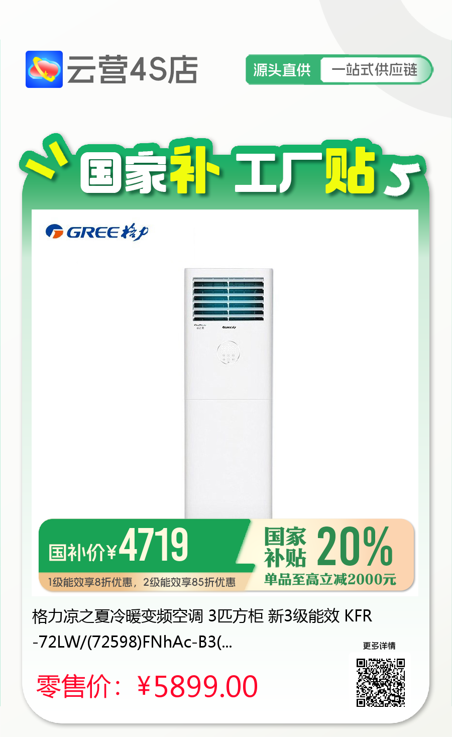 格力凉之夏冷暖变频空调 3匹方柜 新3级能效 KFR-72LW/(72598)FNhAc-B3(皓雪白)