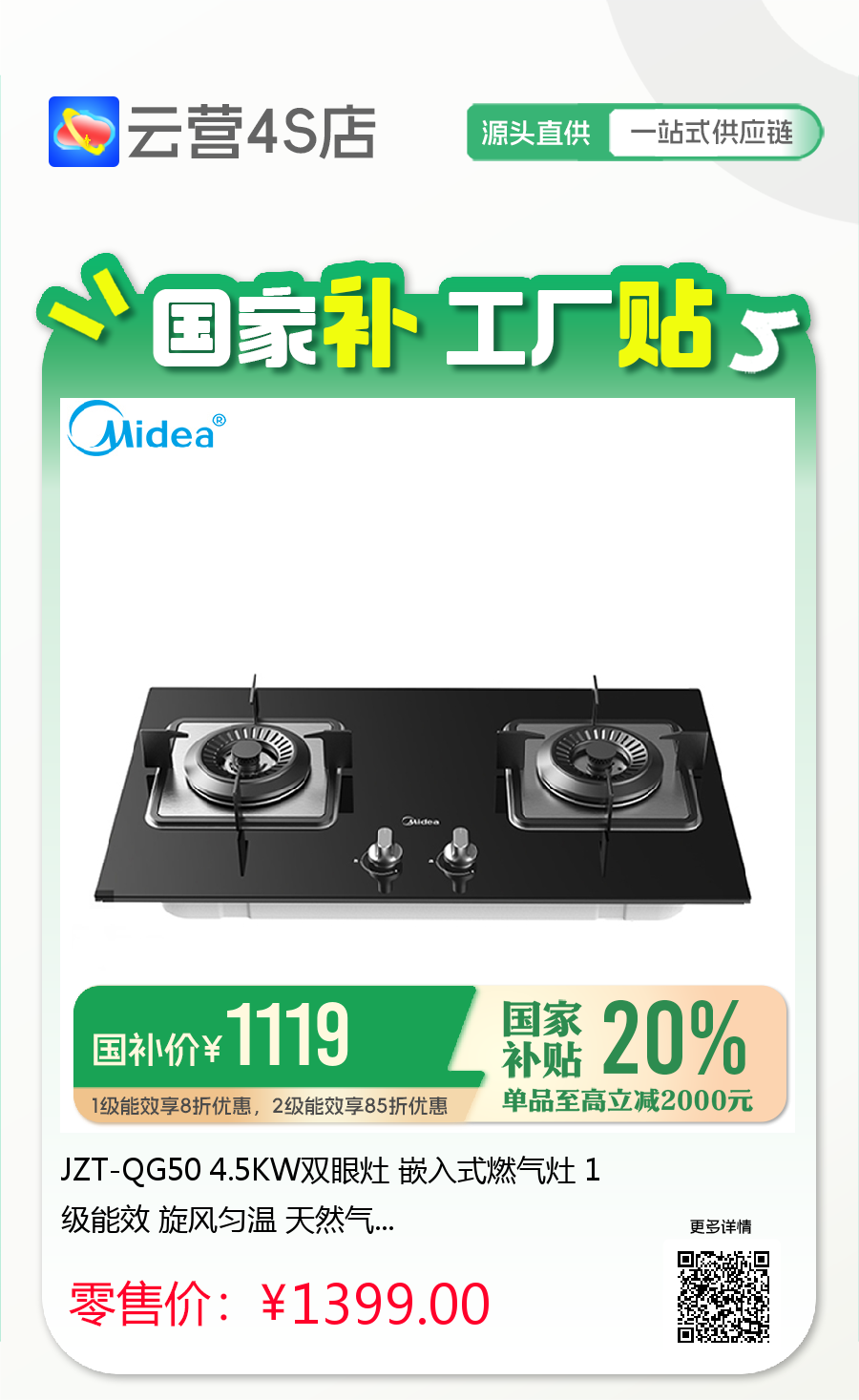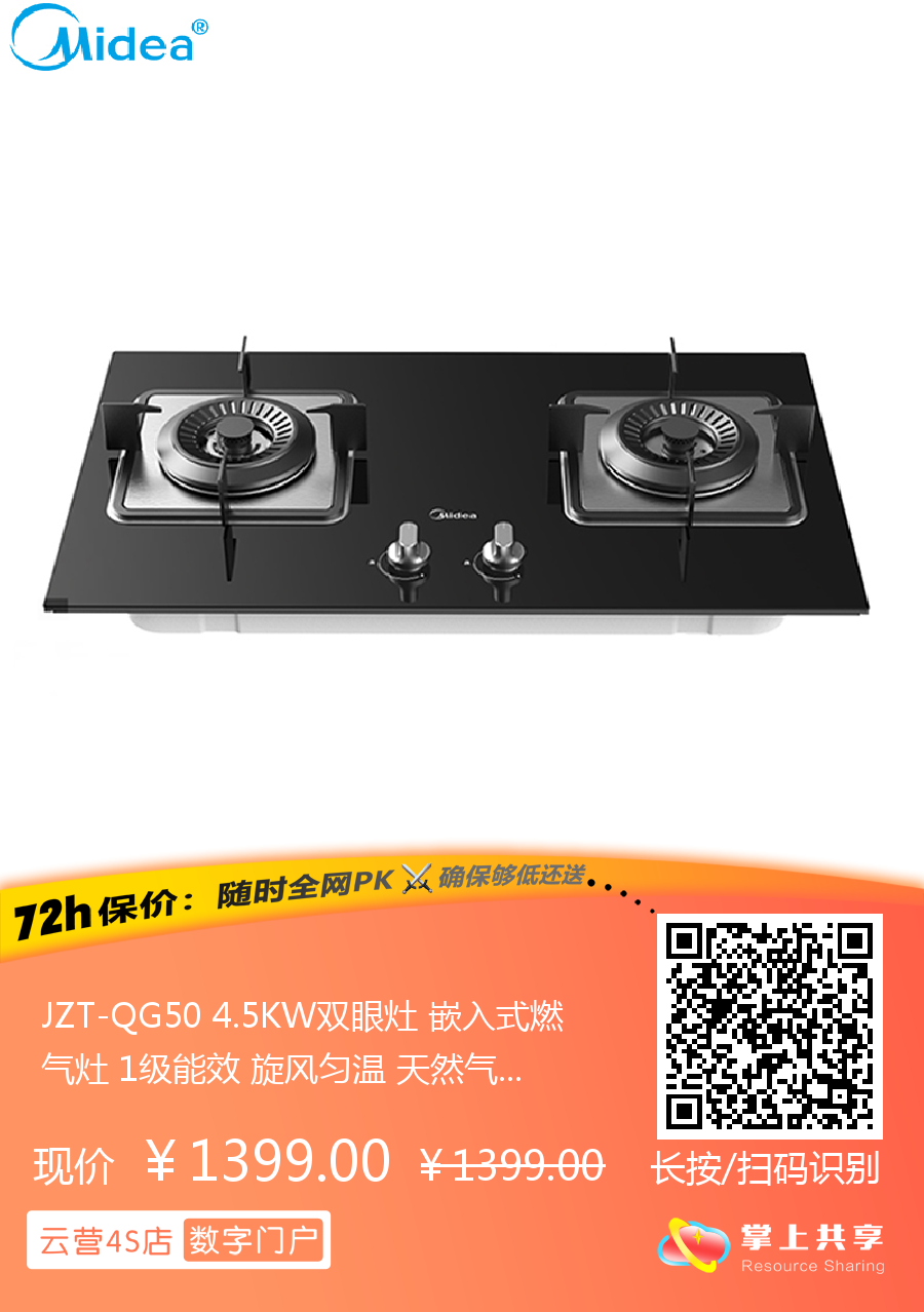 JZT-QG50 4.5KW双眼灶 嵌入式燃气灶 1级能效 旋风匀温 天然气