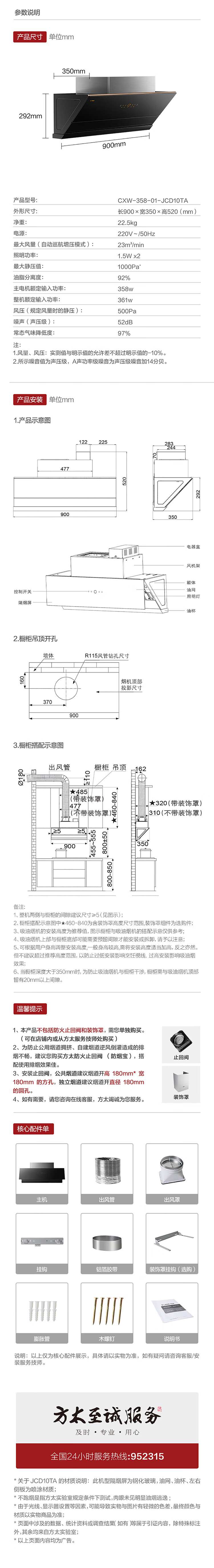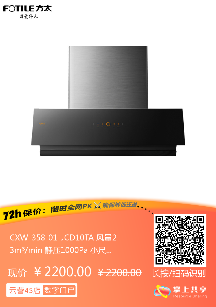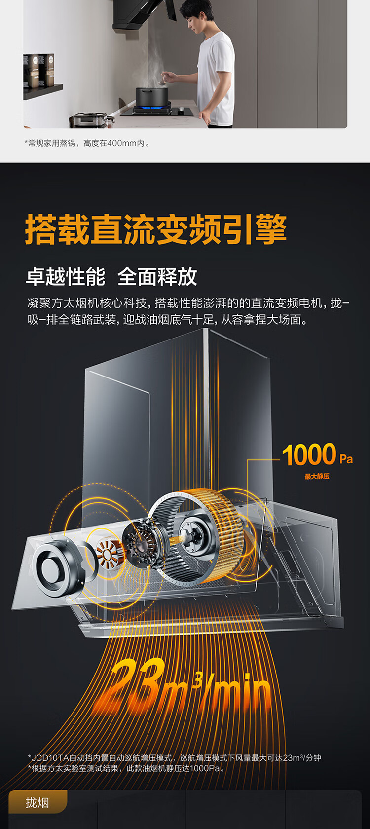 CXW-358-01-JCD10TA 风量23m³/min 静压1000Pa 小尺寸 直流变频 智能巡航 侧吸家用 1级能效 方太(FOTILE)