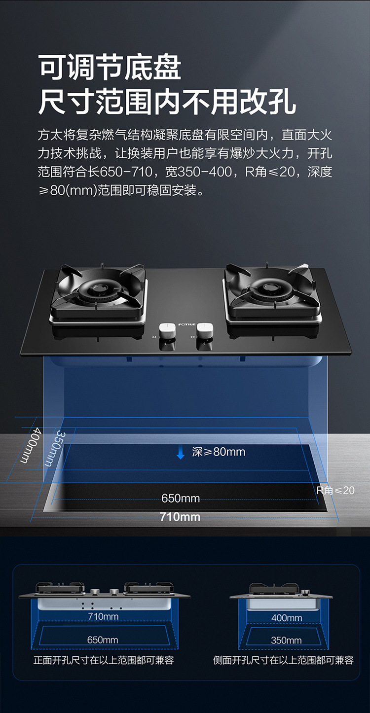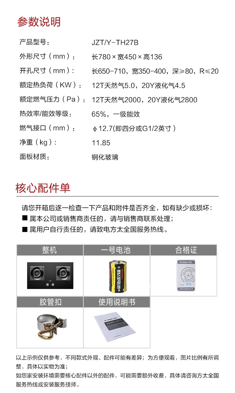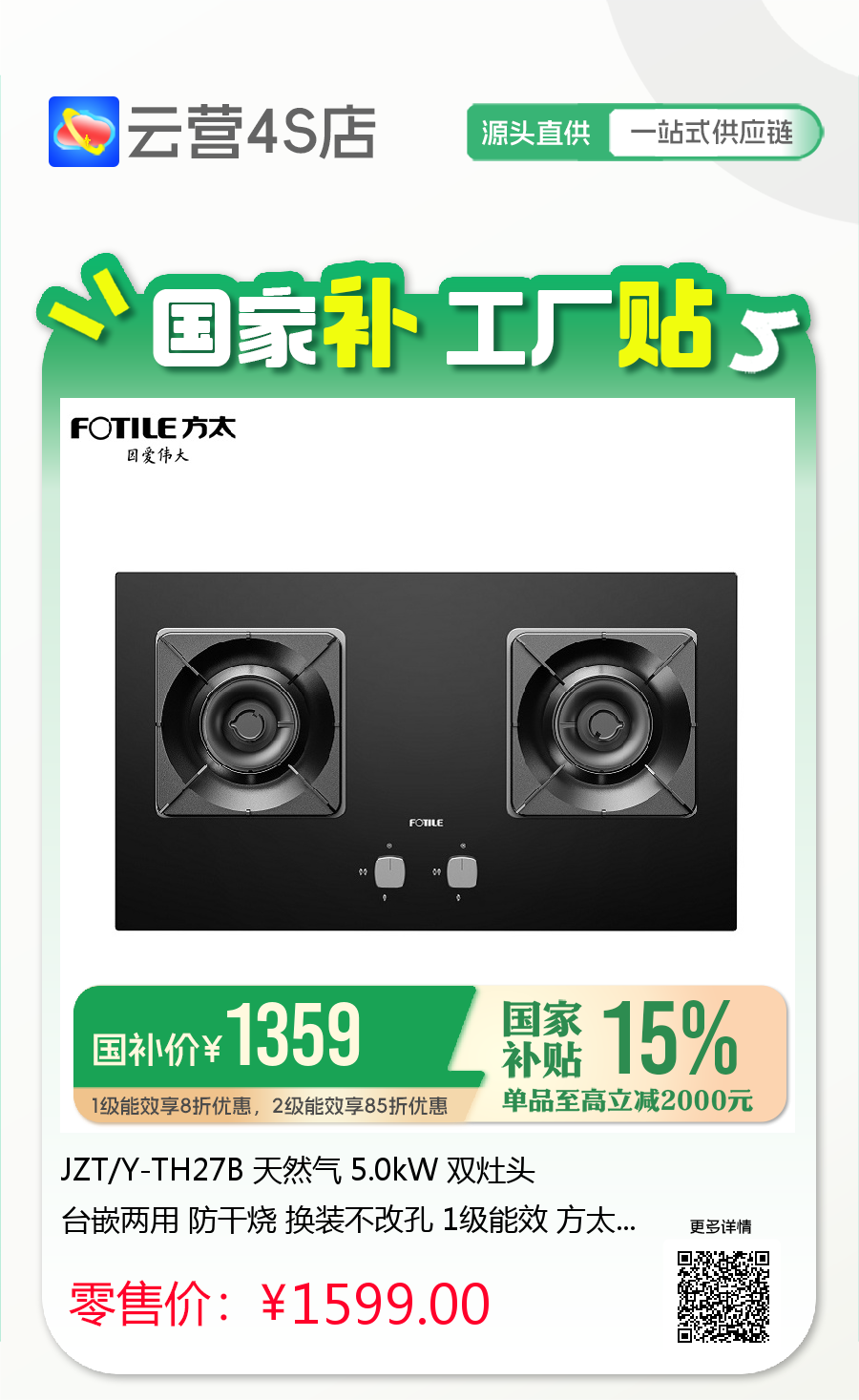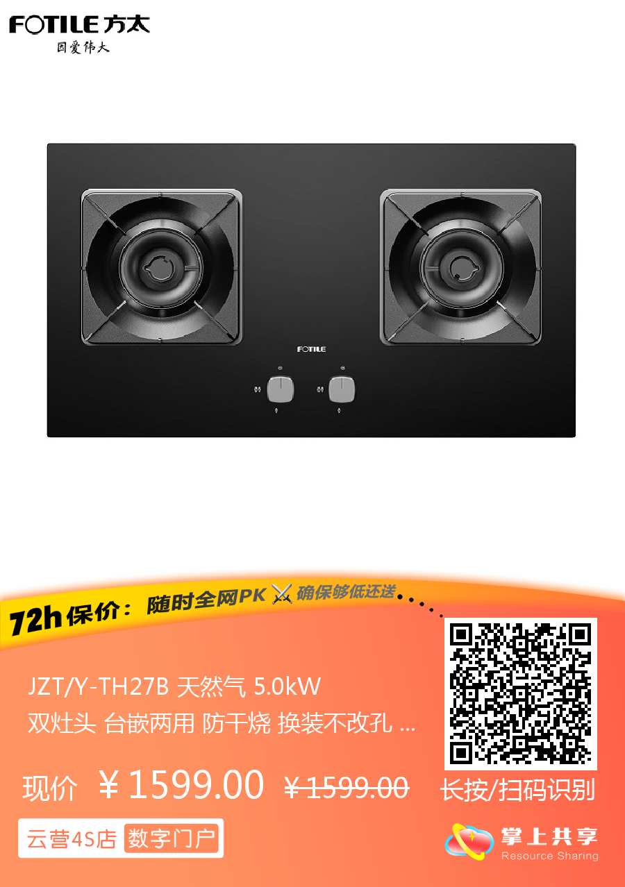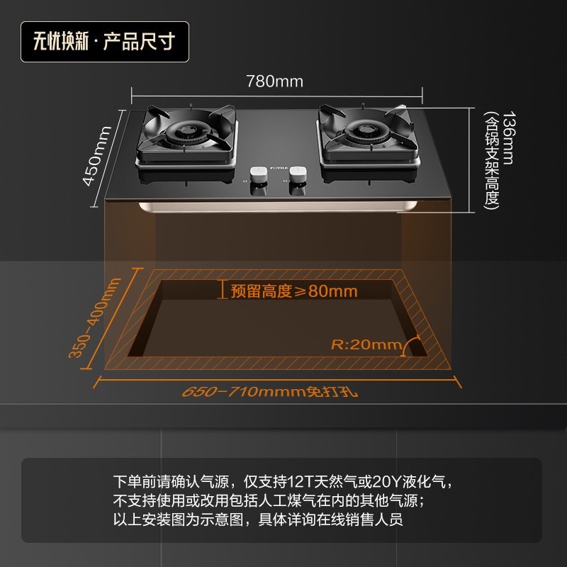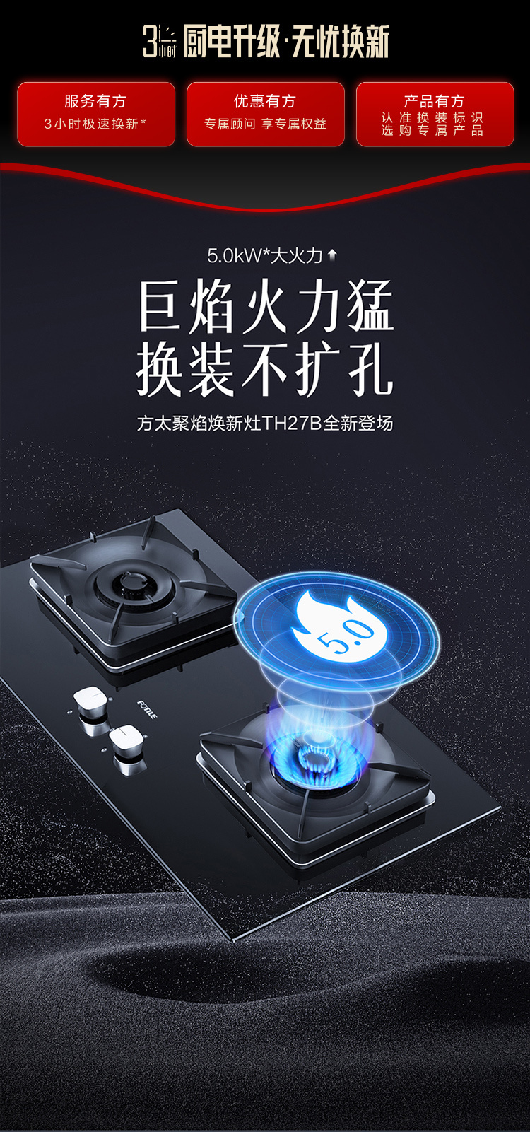 JZT/Y-TH27B 天然气 5.0kW 双灶头 台嵌两用 防干烧 换装不改孔 1级能效 方太(FOTILE)