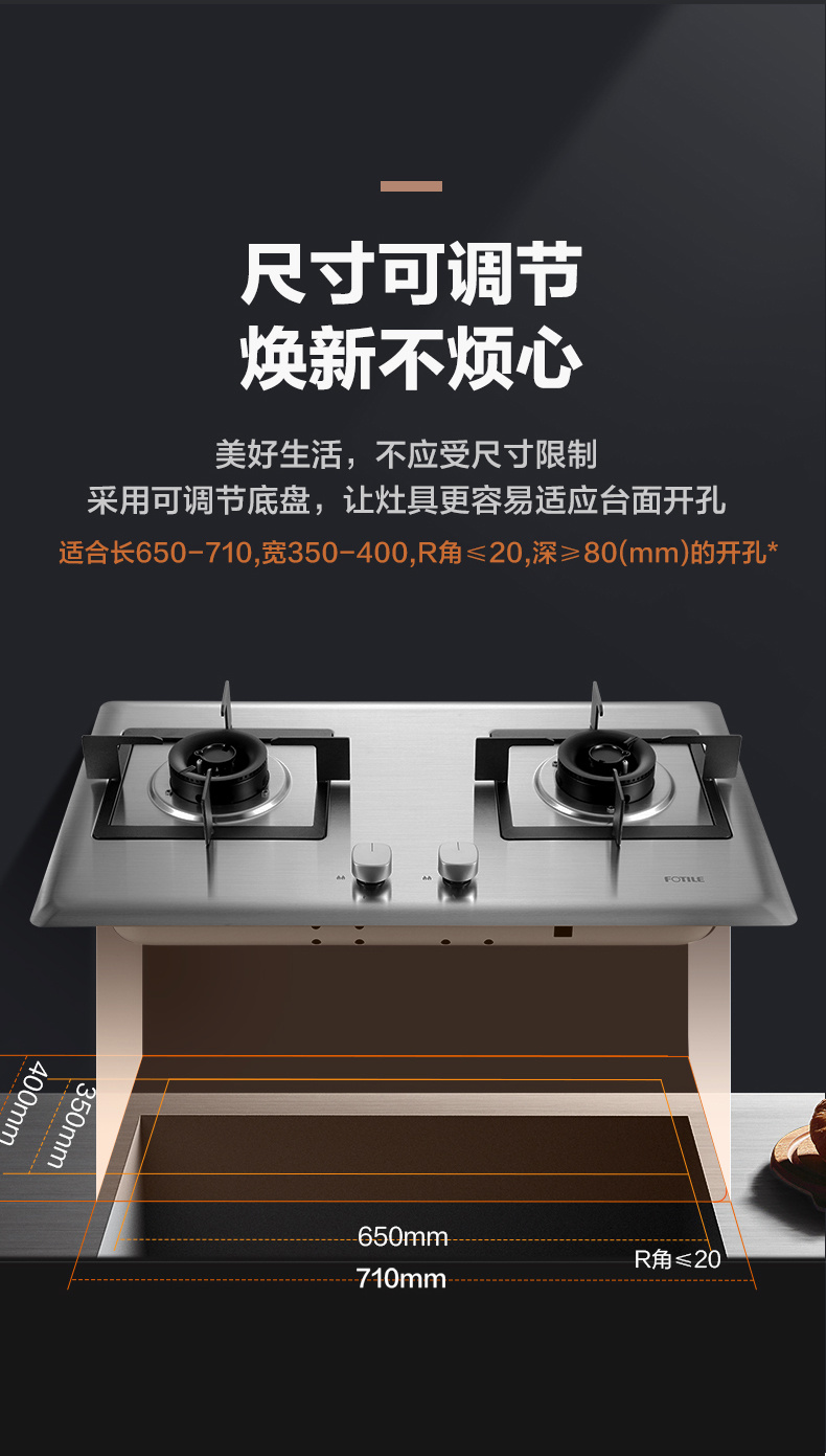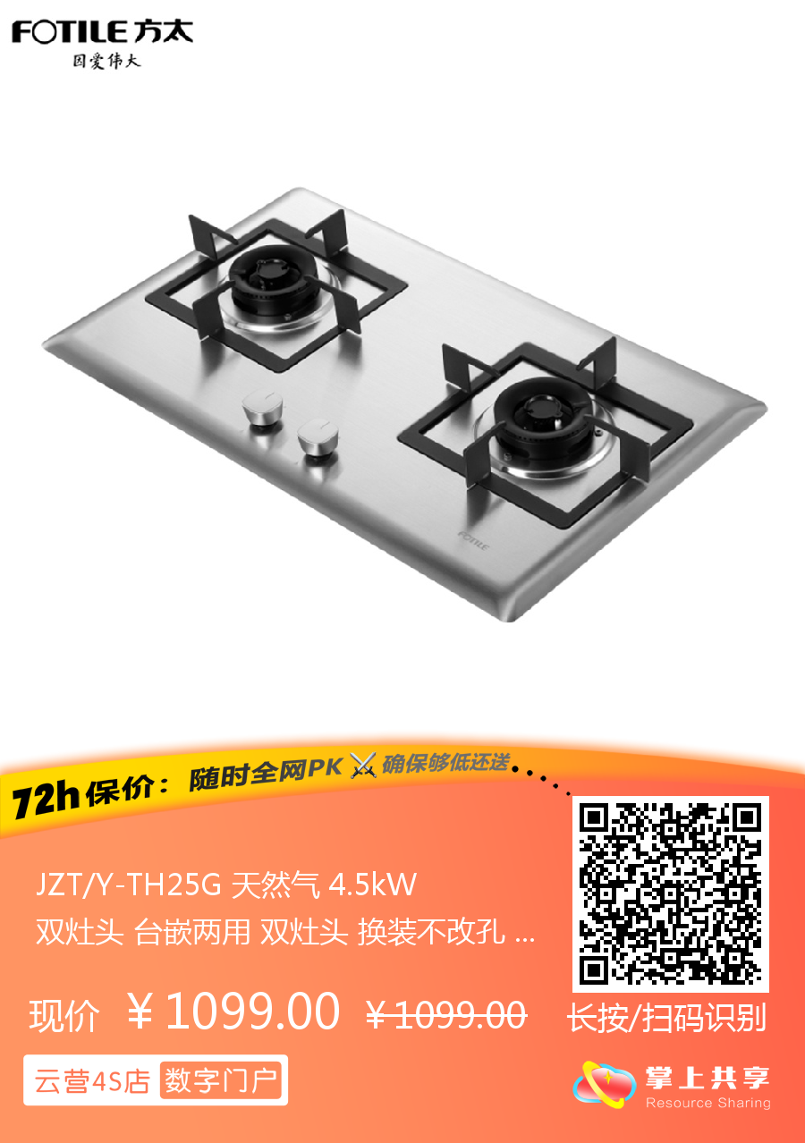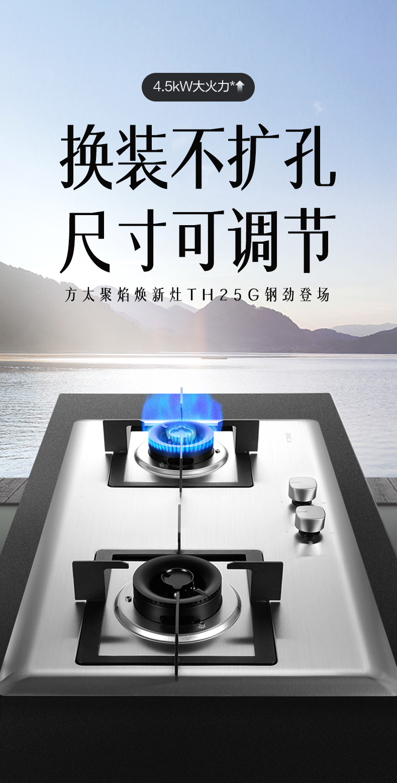JZT/Y-TH25G 天然气 4.5kW 双灶头 台嵌两用 双灶头 换装不改孔 1级能效 方太(FOTILE)