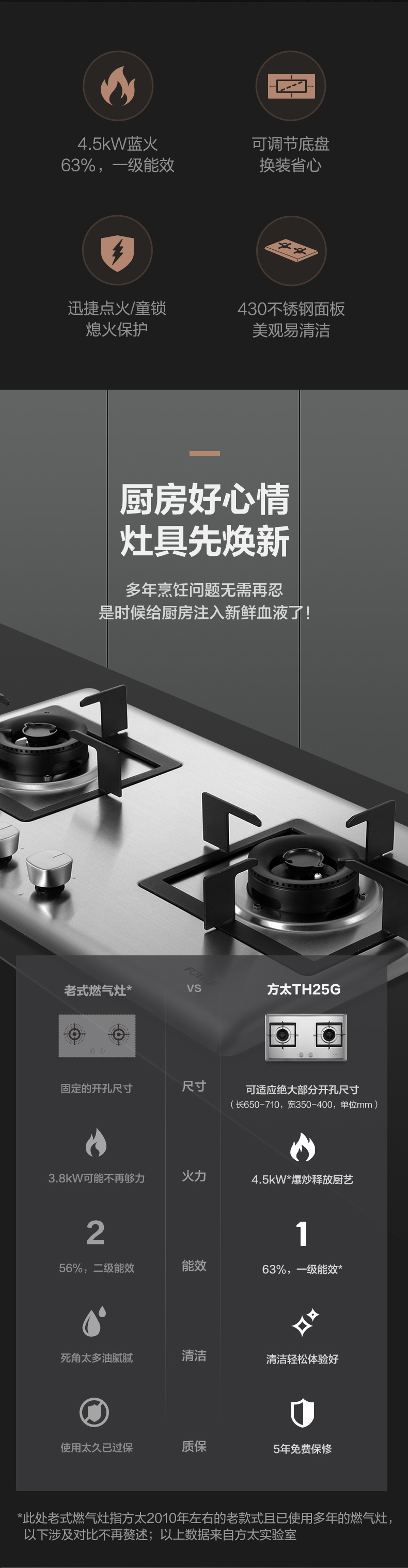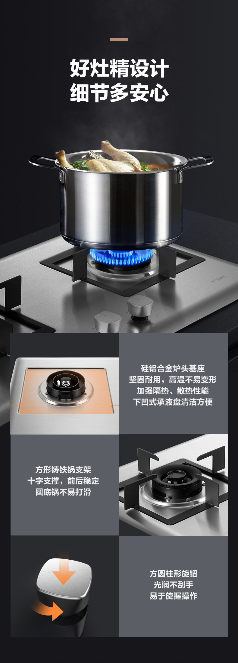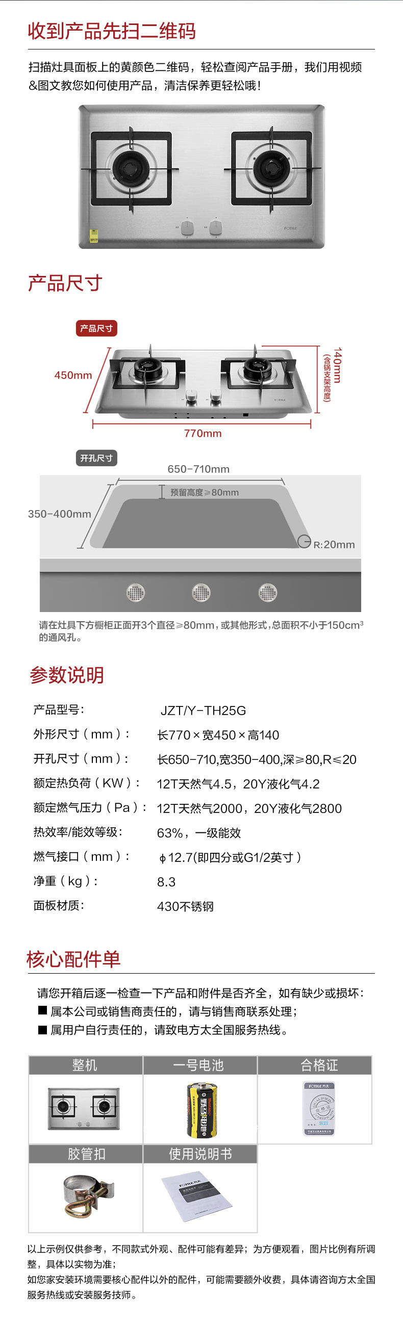 JZT/Y-TH25G 天然气 4.5kW 双灶头 台嵌两用 双灶头 换装不改孔 1级能效 方太(FOTILE)