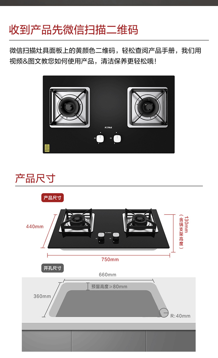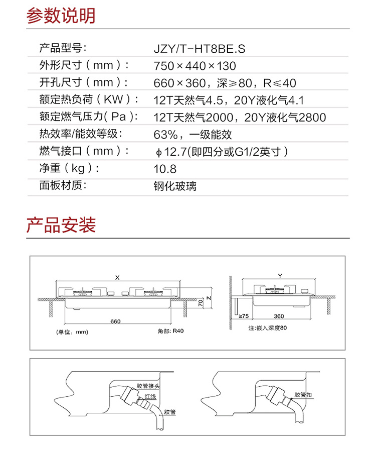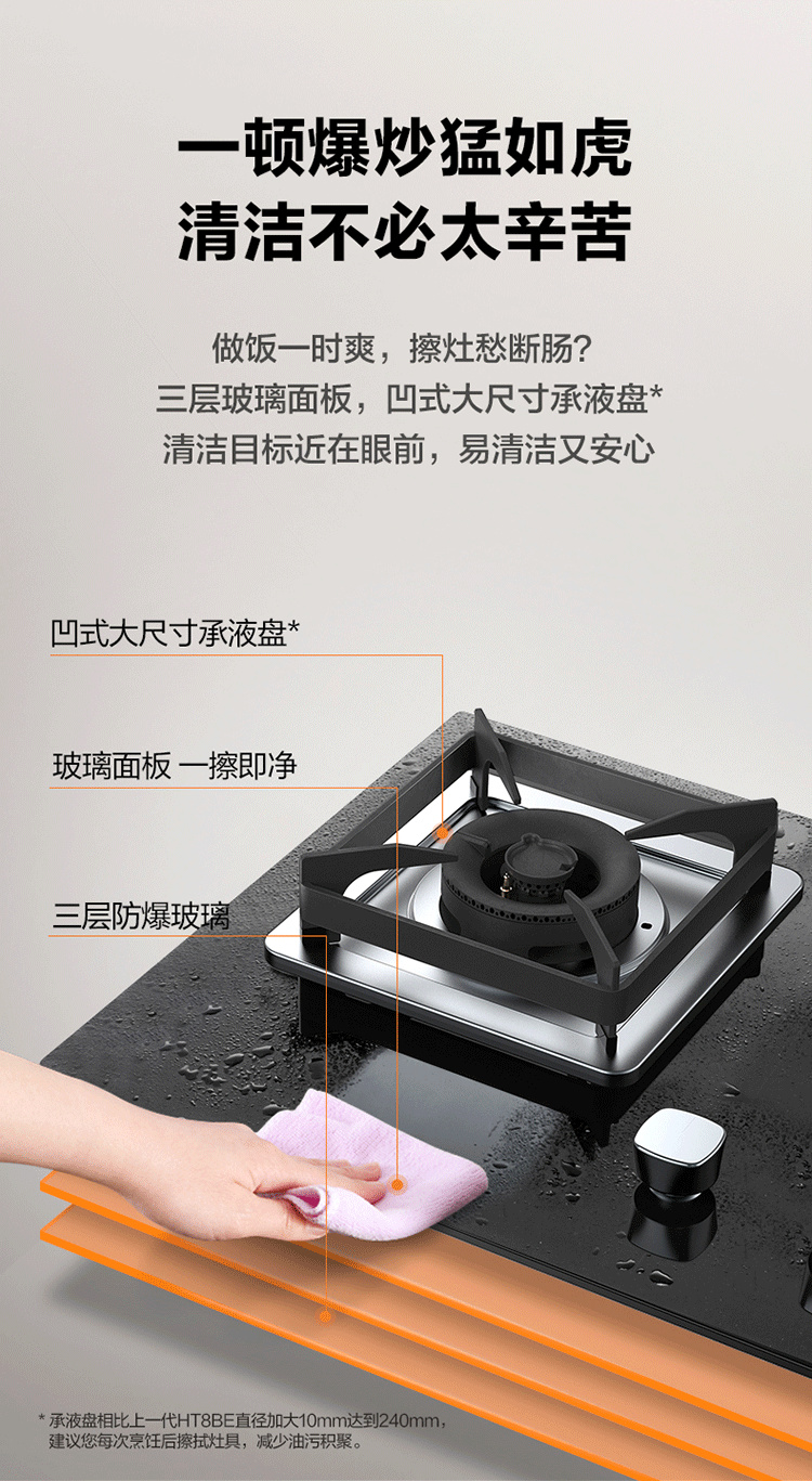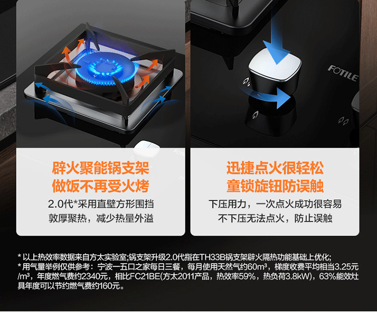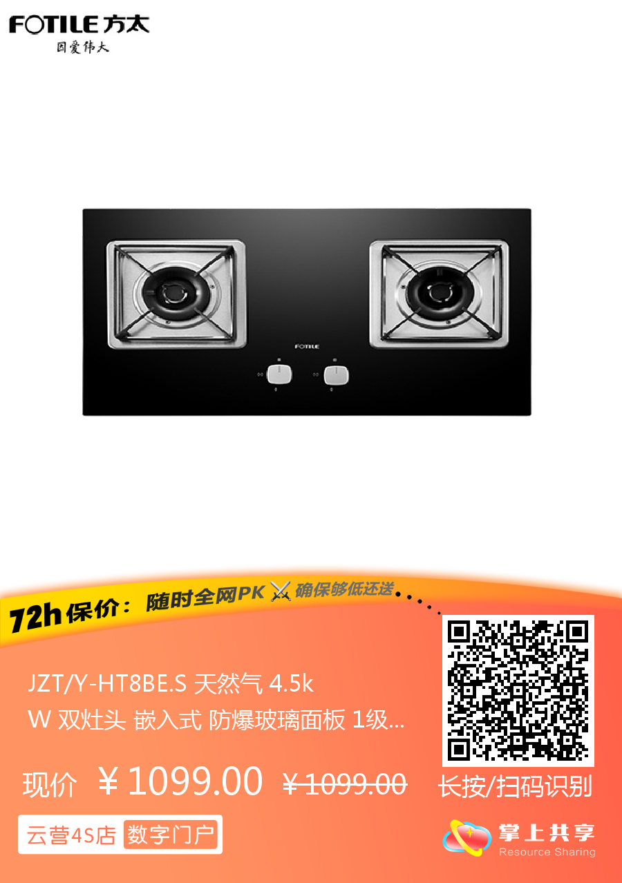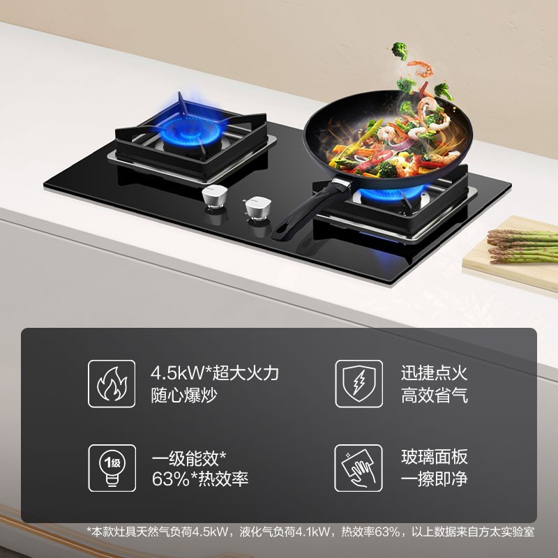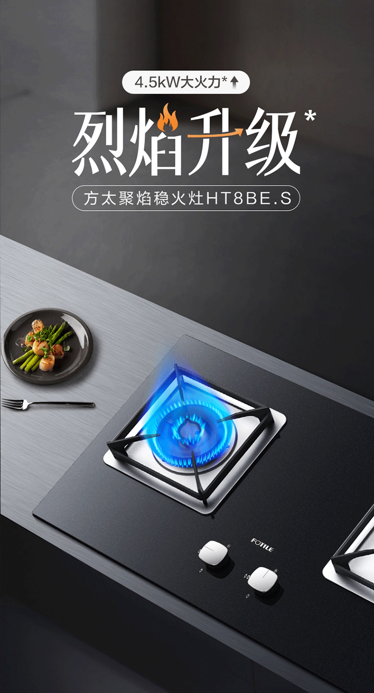 JZT/Y-HT8BE.S 天然气 4.5kW 双灶头 嵌入式 防爆玻璃面板 1级能效 方太(FOTILE)