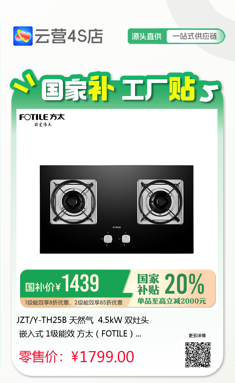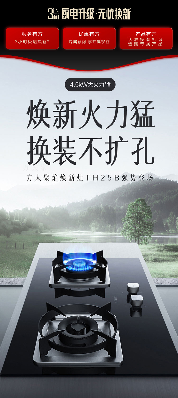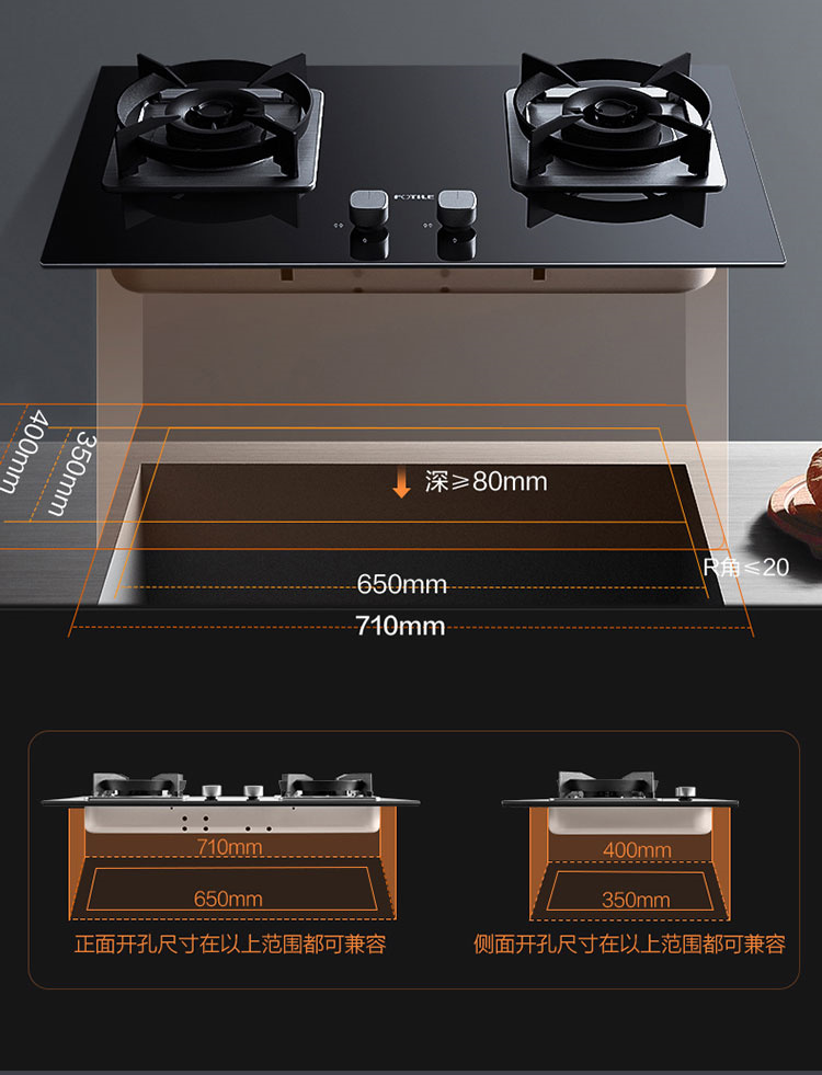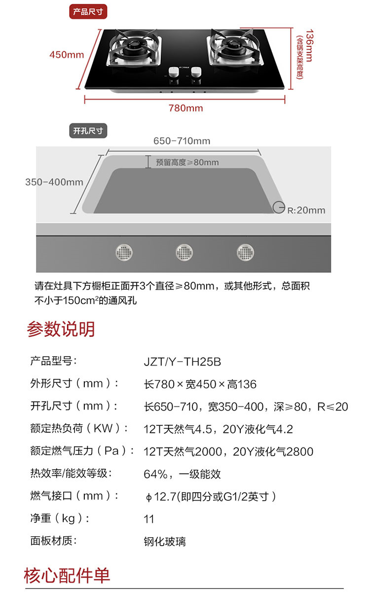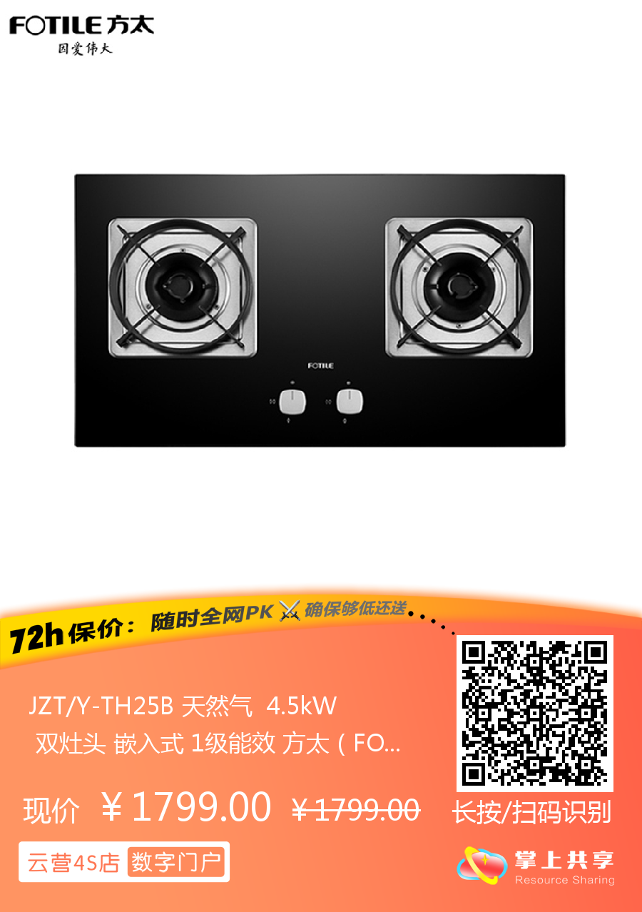 JZT/Y-TH25B 天然气 4.5kW 双灶头 嵌入式 1级能效 方太(FOTILE)