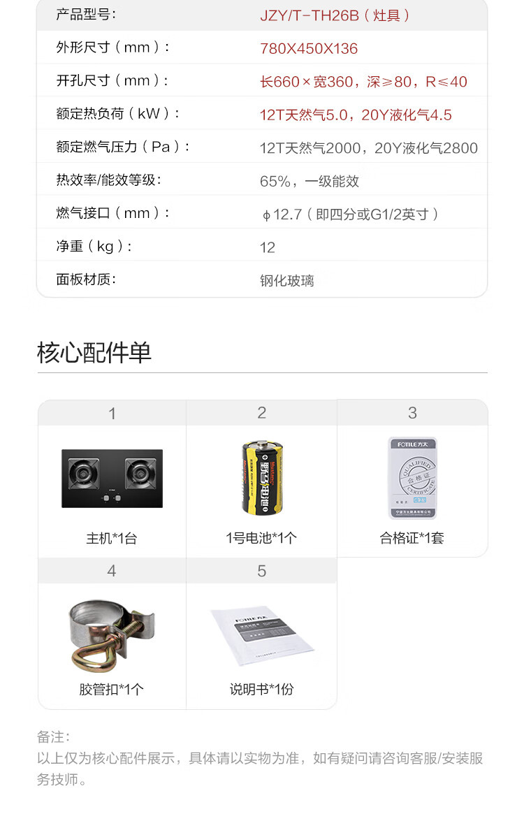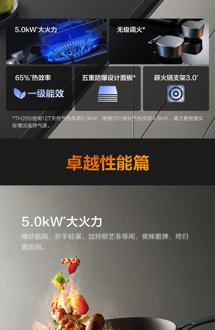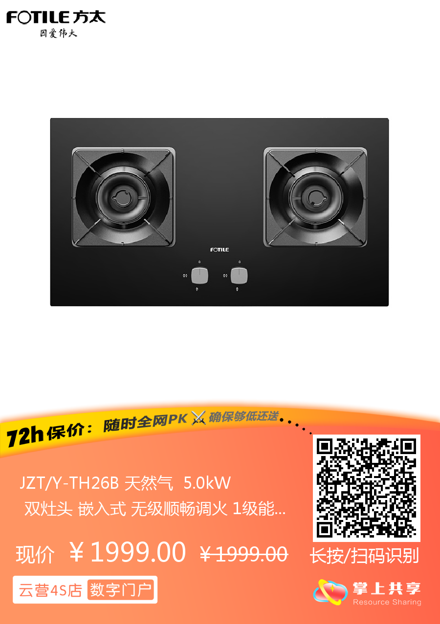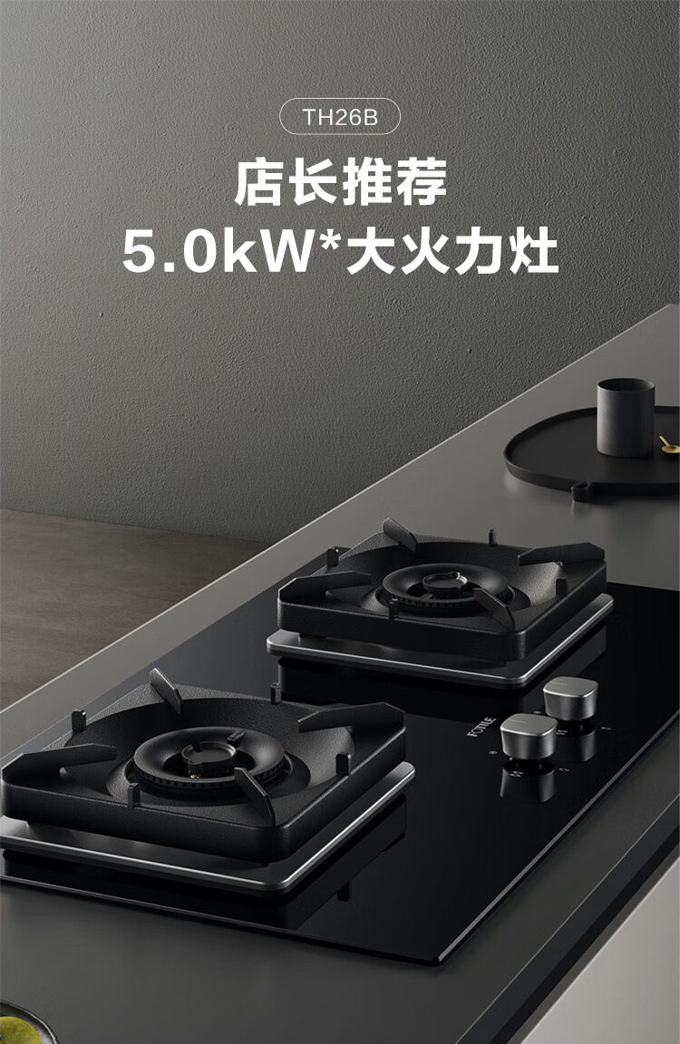 JZT/Y-TH26B 天然气 5.0kW 双灶头 嵌入式 无级顺畅调火 1级能效 方太(FOTILE)