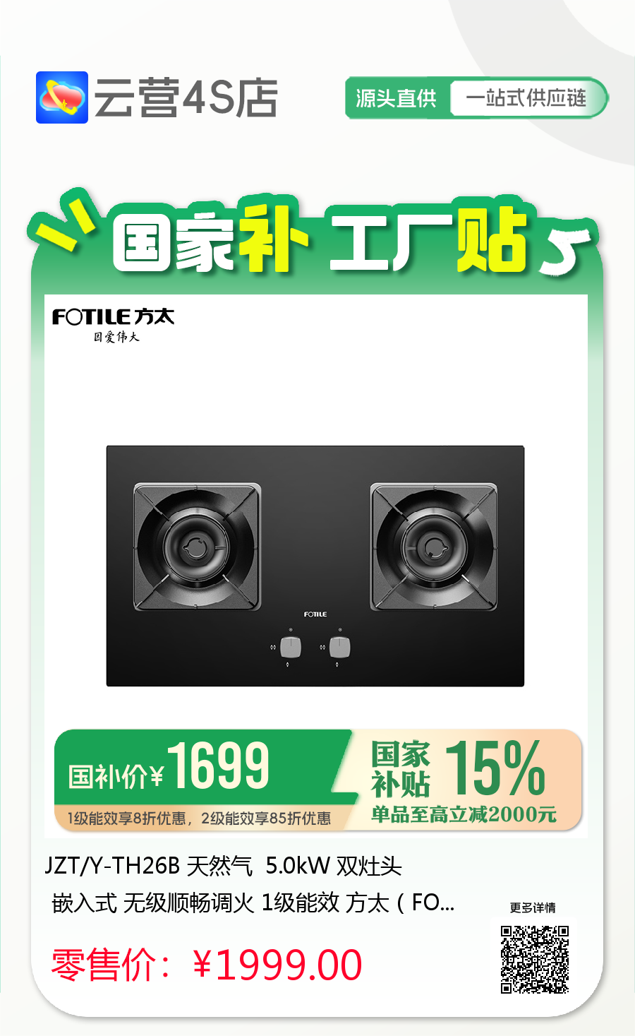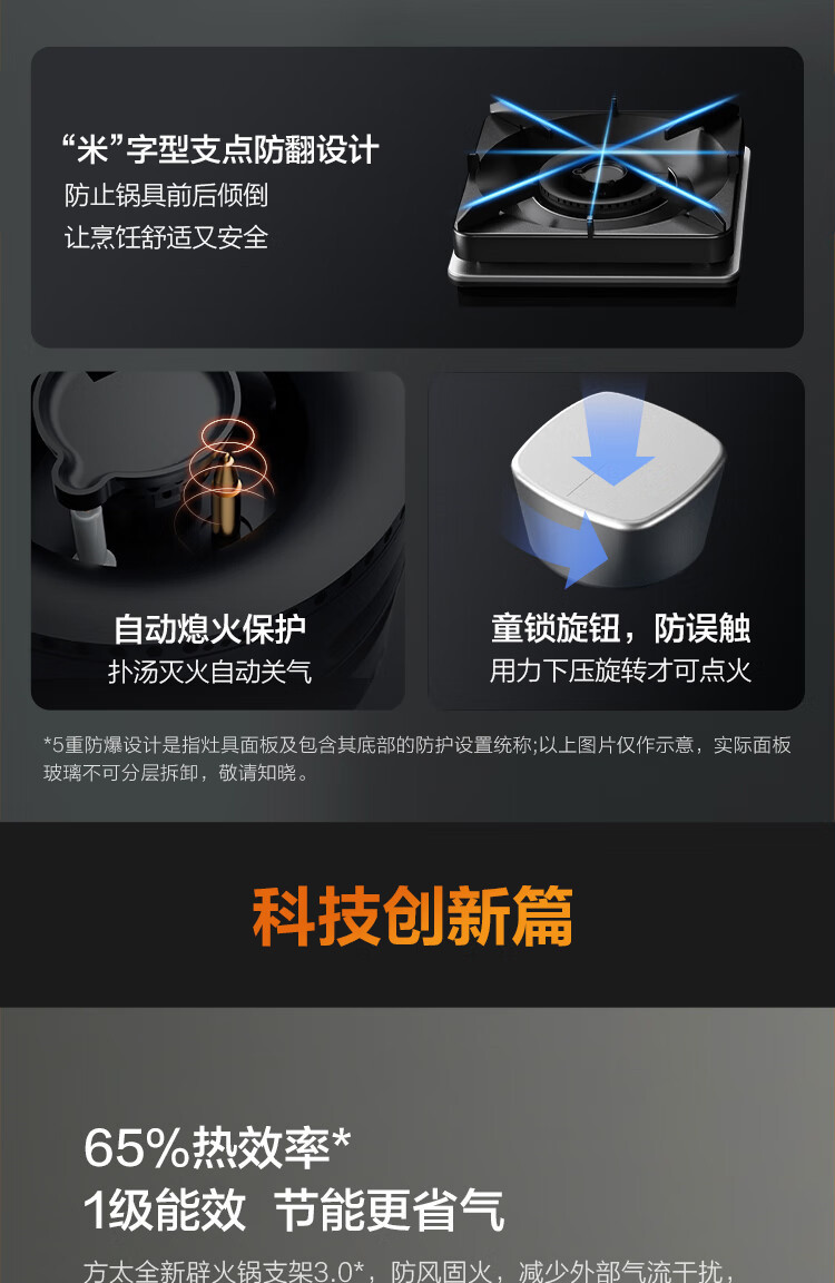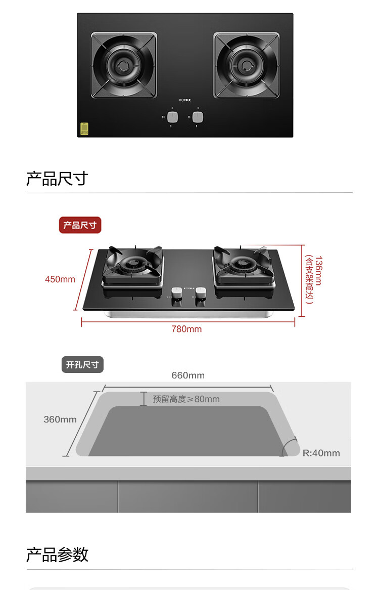 JZT/Y-TH26B 天然气 5.0kW 双灶头 嵌入式 无级顺畅调火 1级能效 方太(FOTILE)