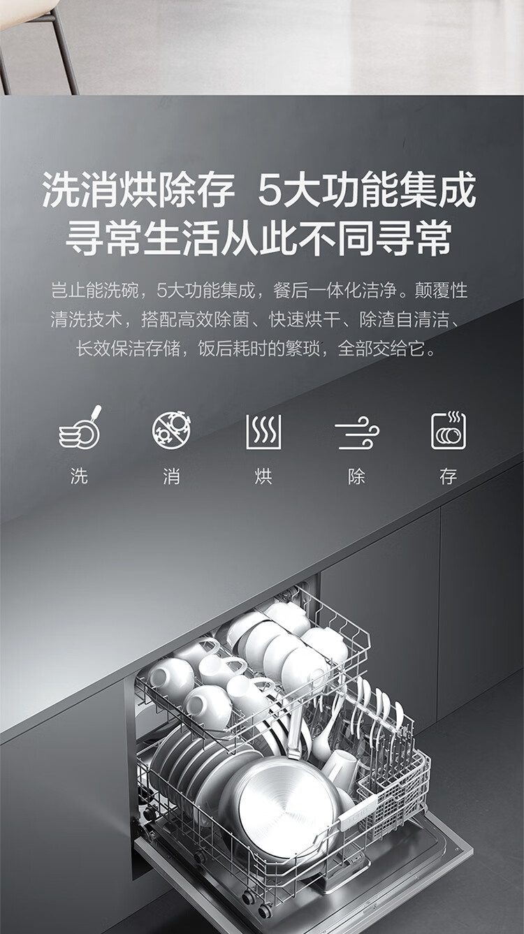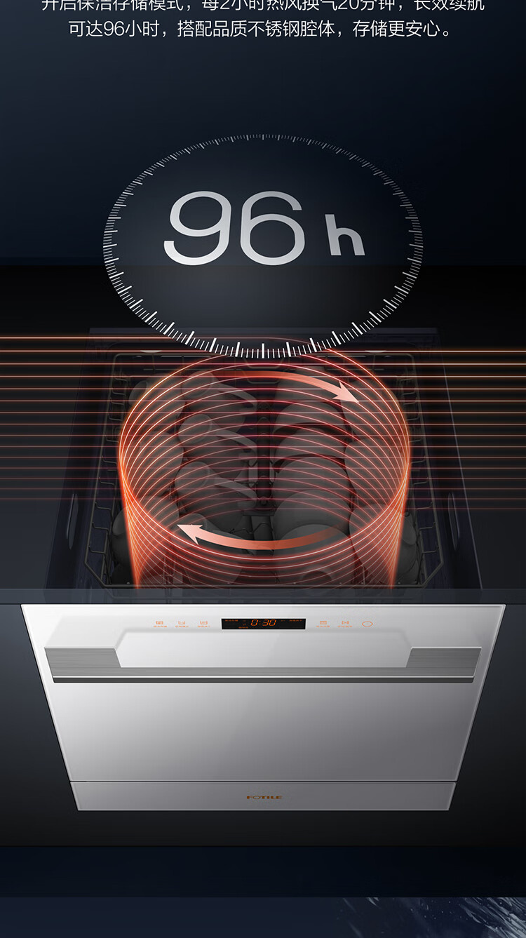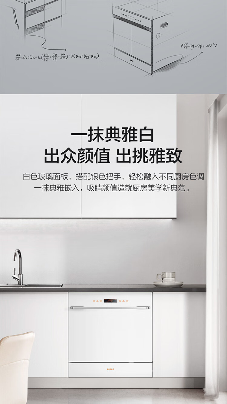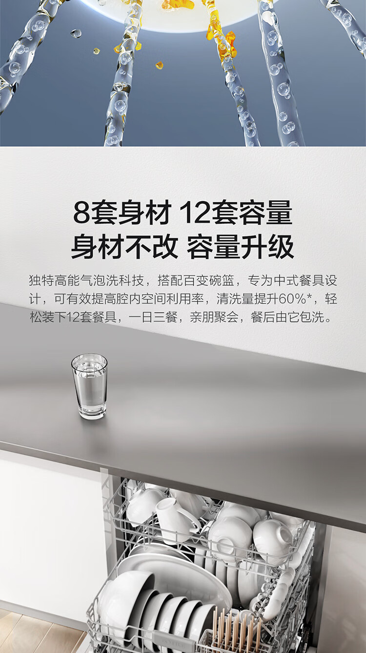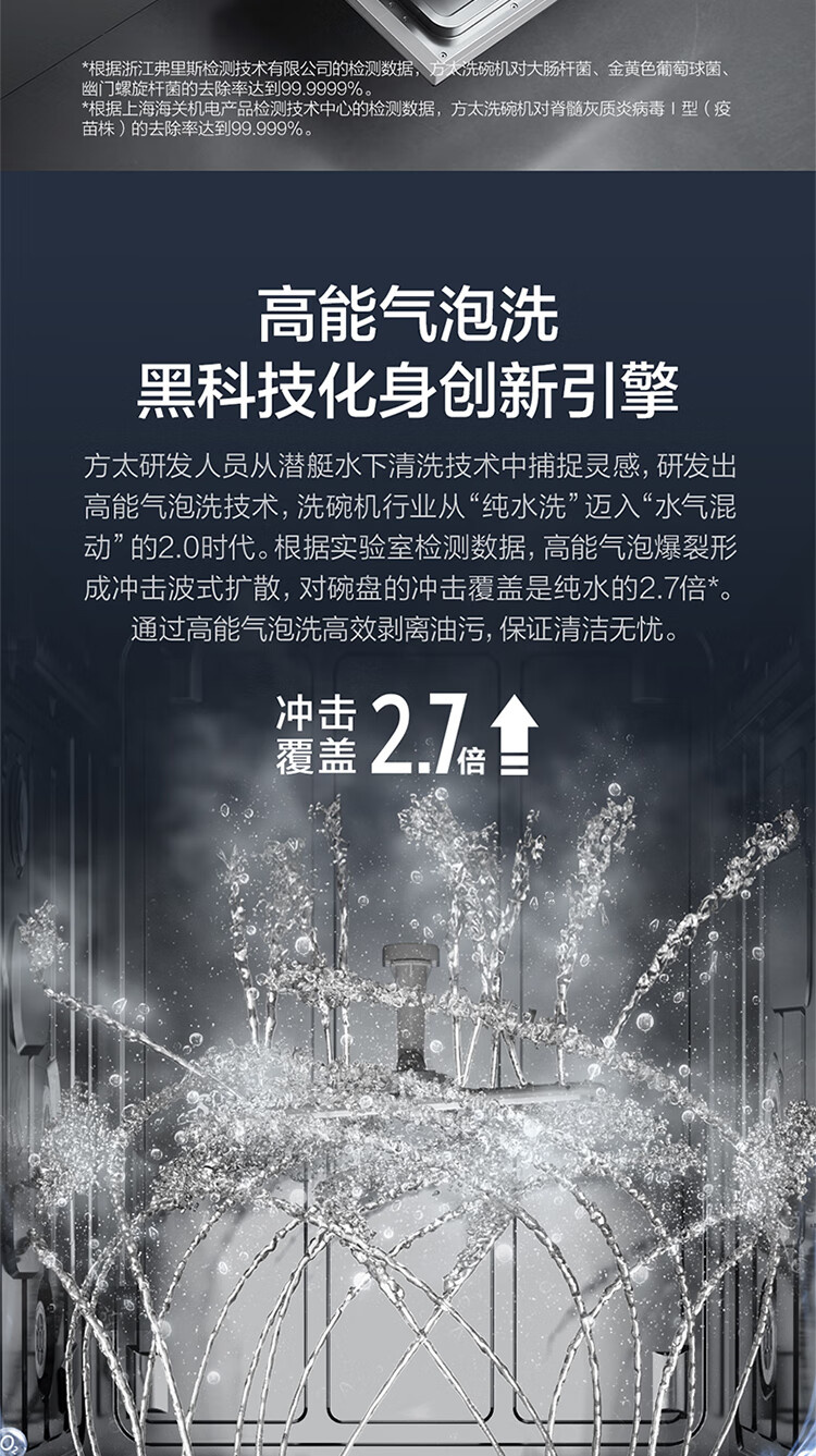 JPCD12E-02-N1 12套嵌入式洗碗机 高能气泡洗 热风烘干 7天长效存储 30min超快洗 一级水效 方太(FOTILE)