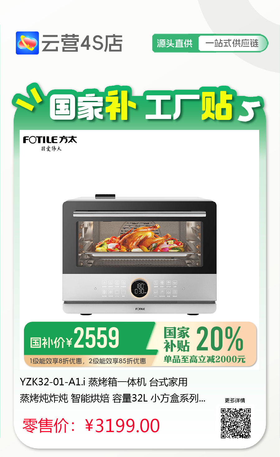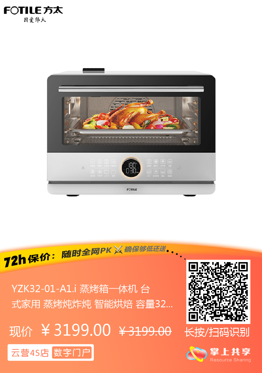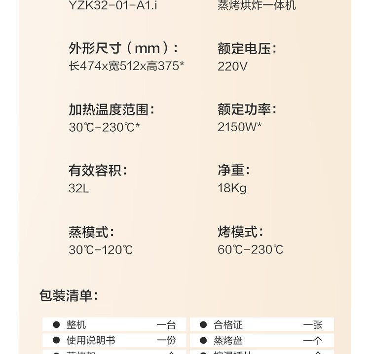 YZK32-01-A1.i 蒸烤箱一体机 台式家用 蒸烤炖炸炖 智能烘焙 容量32L 小方盒系列 方太(FOTILE)